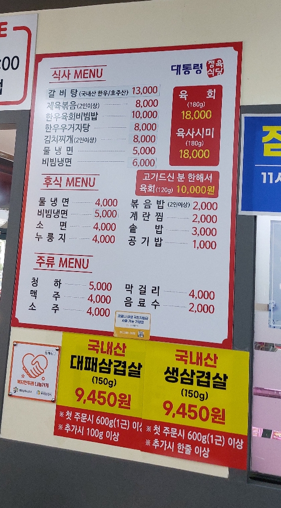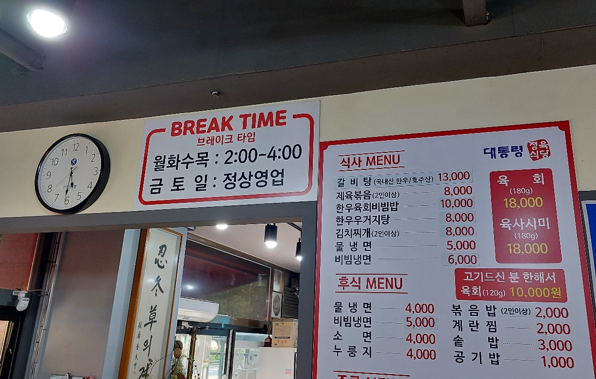 태평동 맛집 대통령 정육 식당은 금요일 토요일 일요일은 브레이크 타임이 없으며