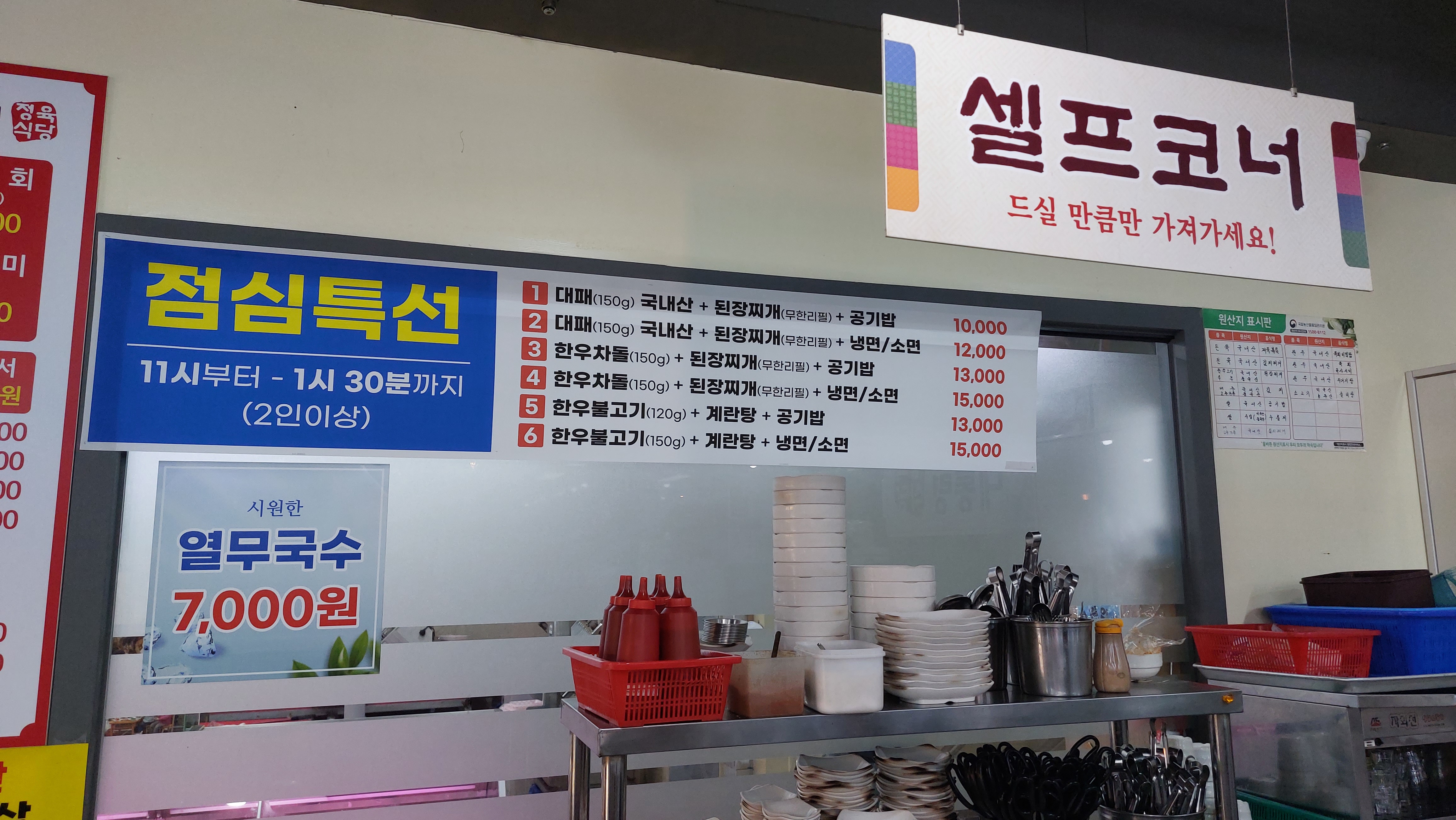 여기서 기본찬이 부족하면 샐러드바에서 직접 가져다 드셔도 됩니다.