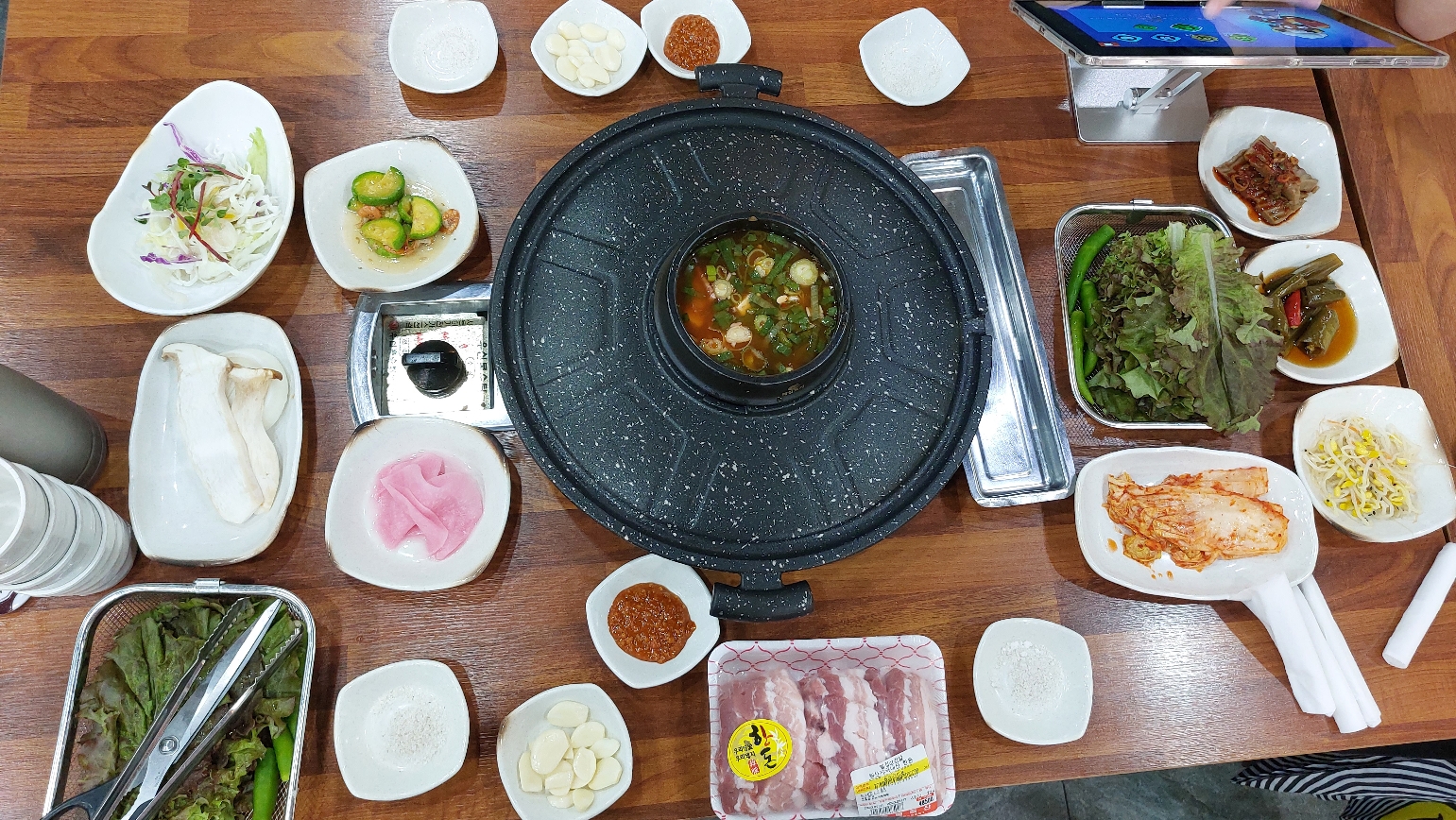 고기익는 속도보다 된장찌개가 더 빨리 맛있게 익고 있습니다.
