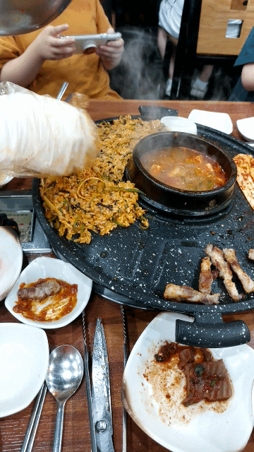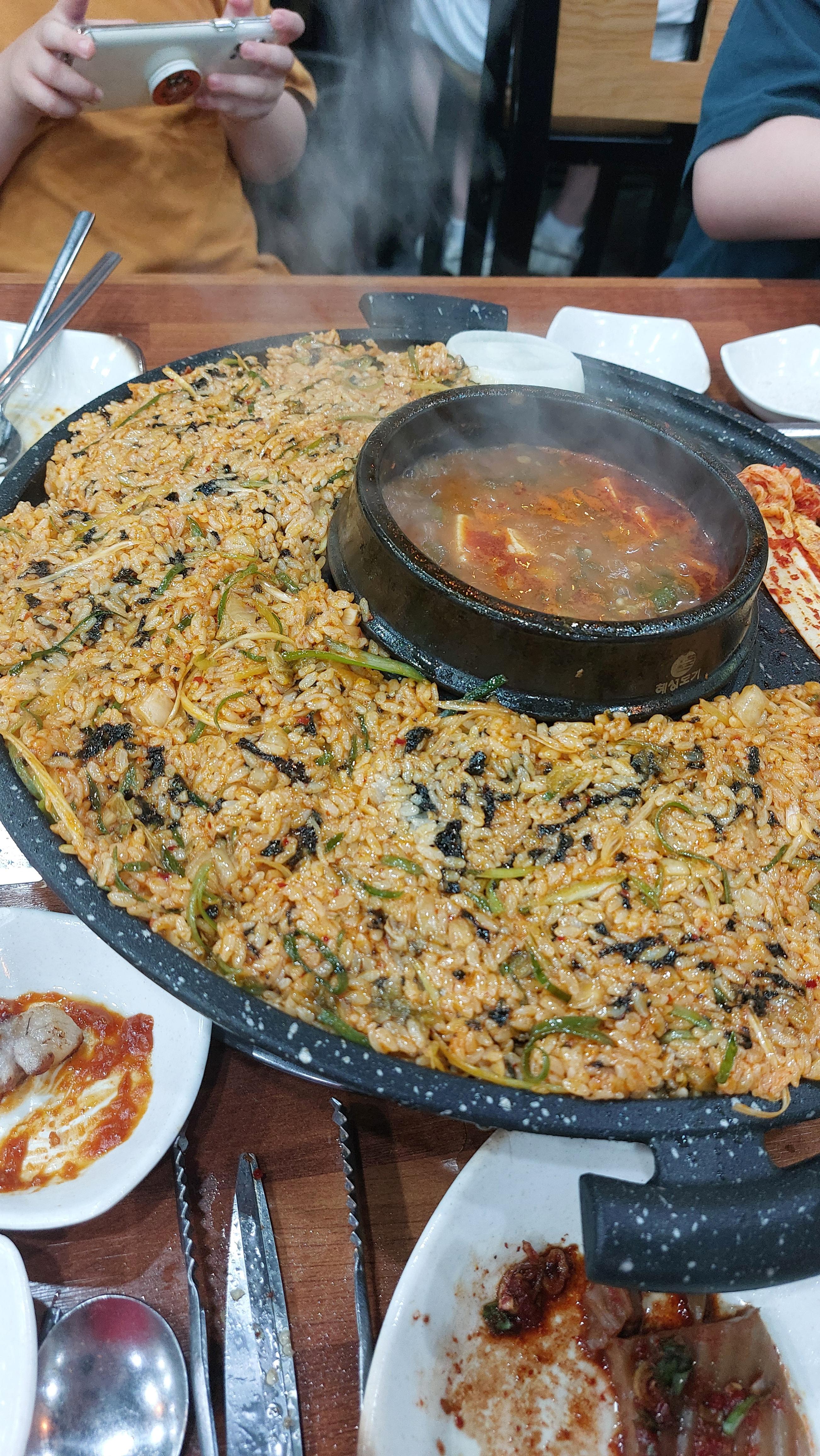볶음밥 2인분을 시켰는데 불판이 거의 가득 찹니다 양이 생각보다 굉장히 푸짐합니다.