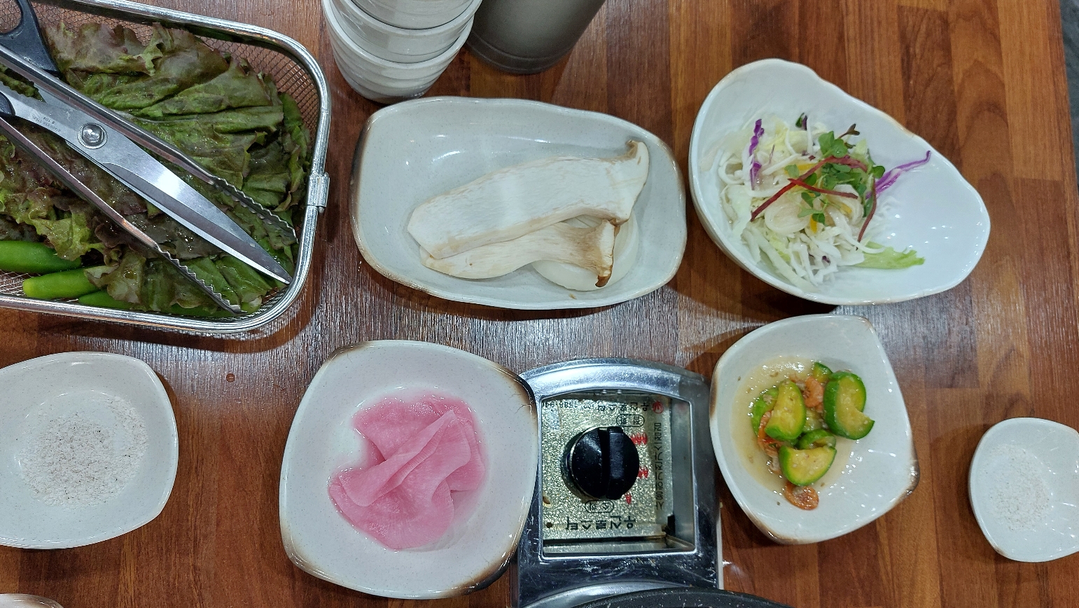 고기를 갖고 와 보니 한 상차림이 차려져 있습니다.