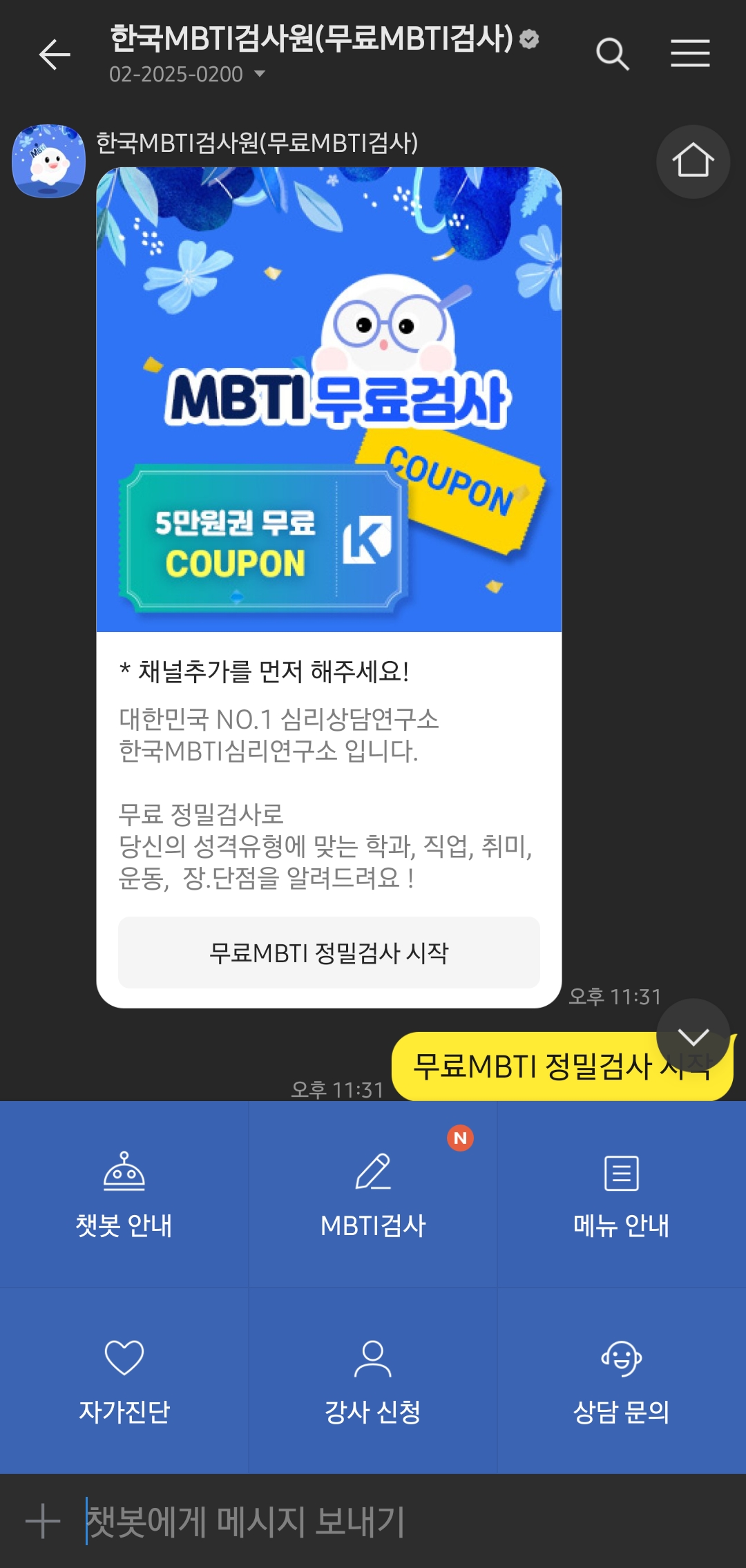 무료 MBTI 정밀검사 메뉴가 뜨면