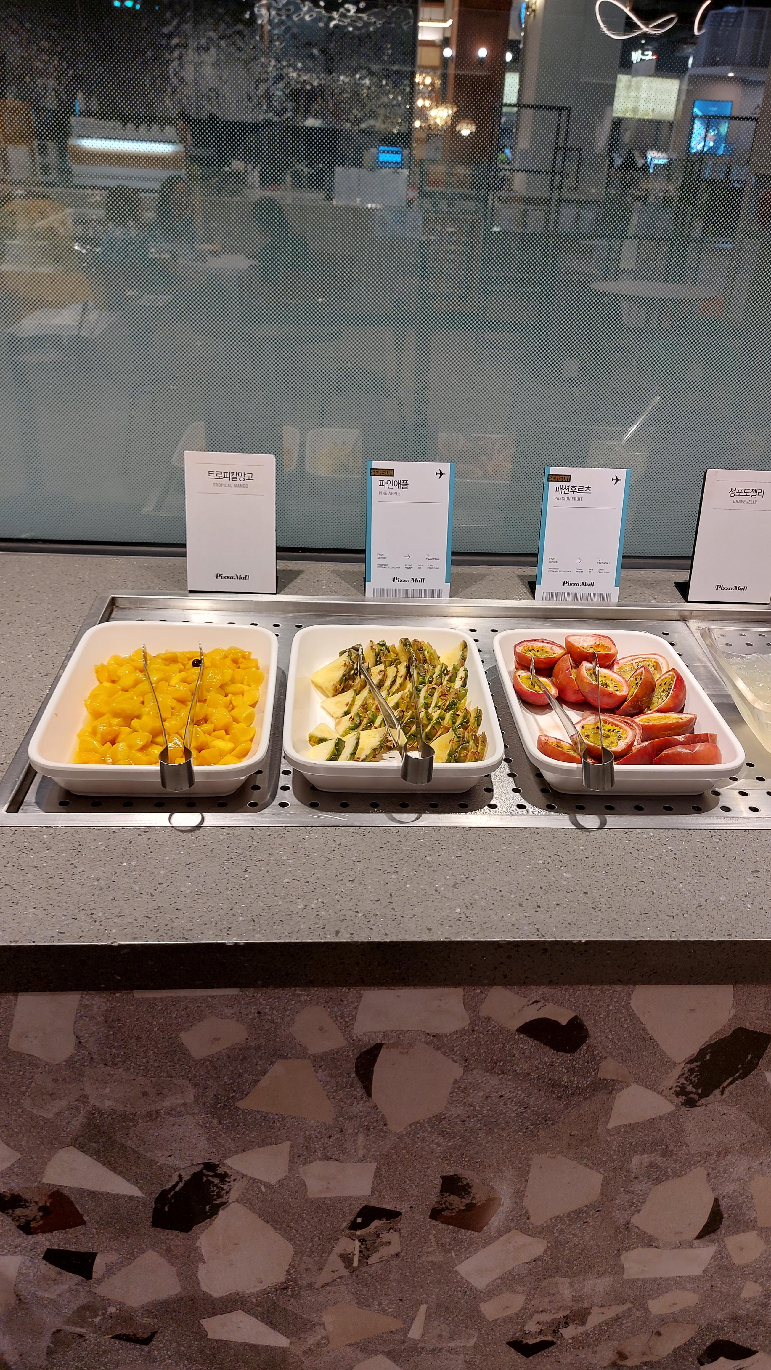 과일은 망고랑 파인애플 패션후르츠 3종류가 있었습니다.