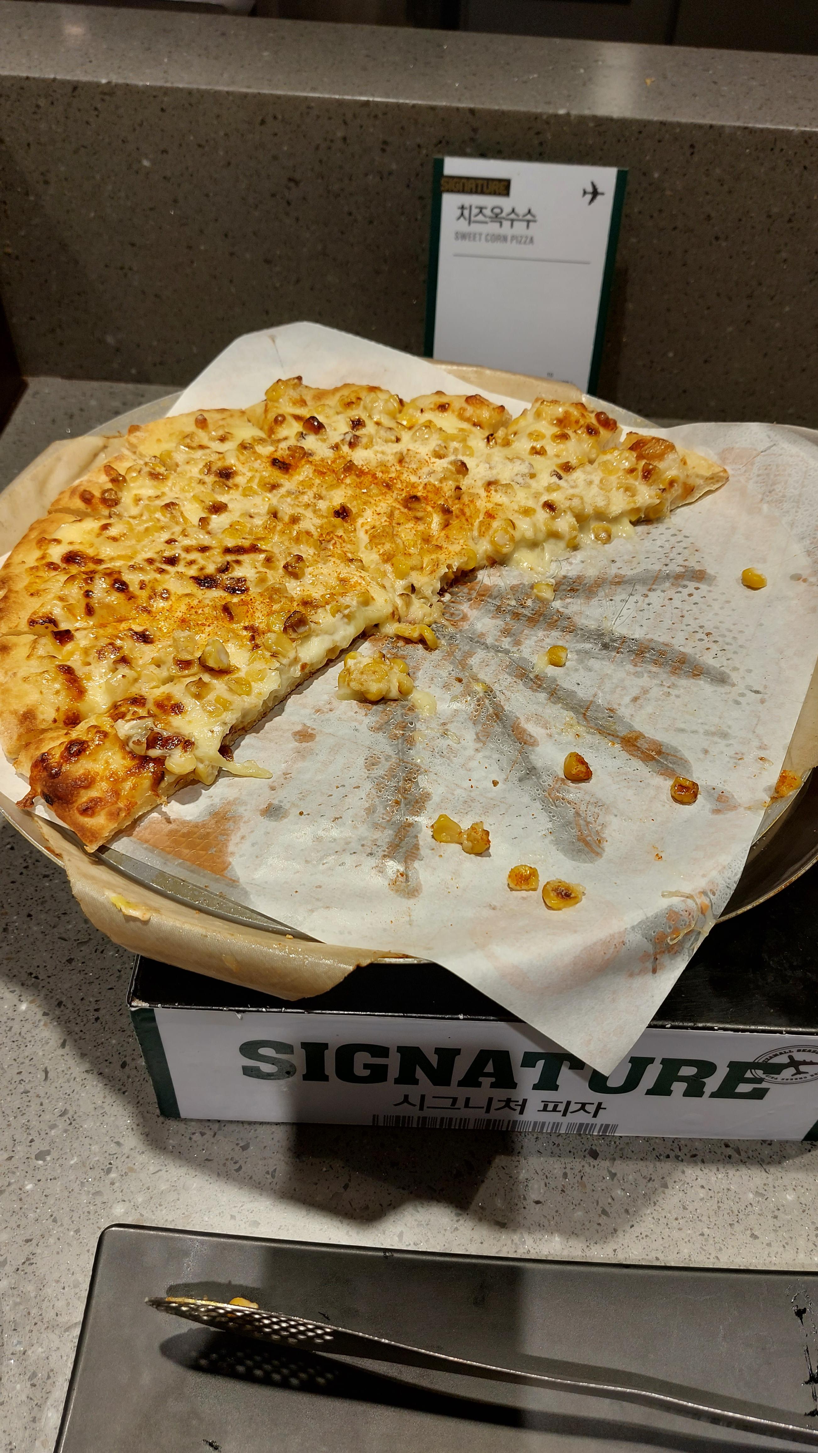 생각보다 콘치즈 피자가 이렇게 맛있을 줄은 몰랐네요.