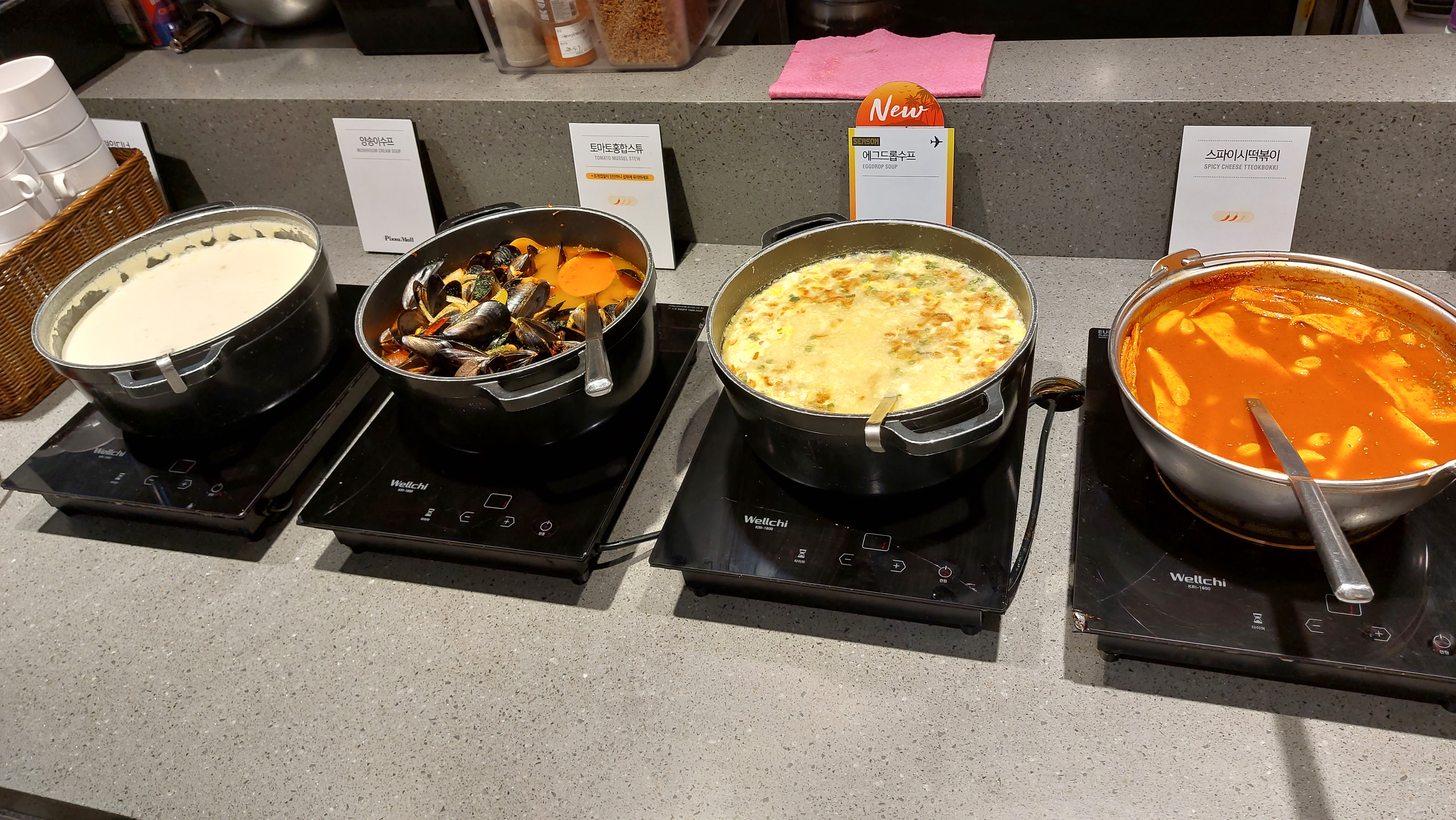 리조또 떡볶이 파스타 스프등 일반 뷔페에서 먹을 수 있는 음식들도 생각보다 되게 많이 있어요.
