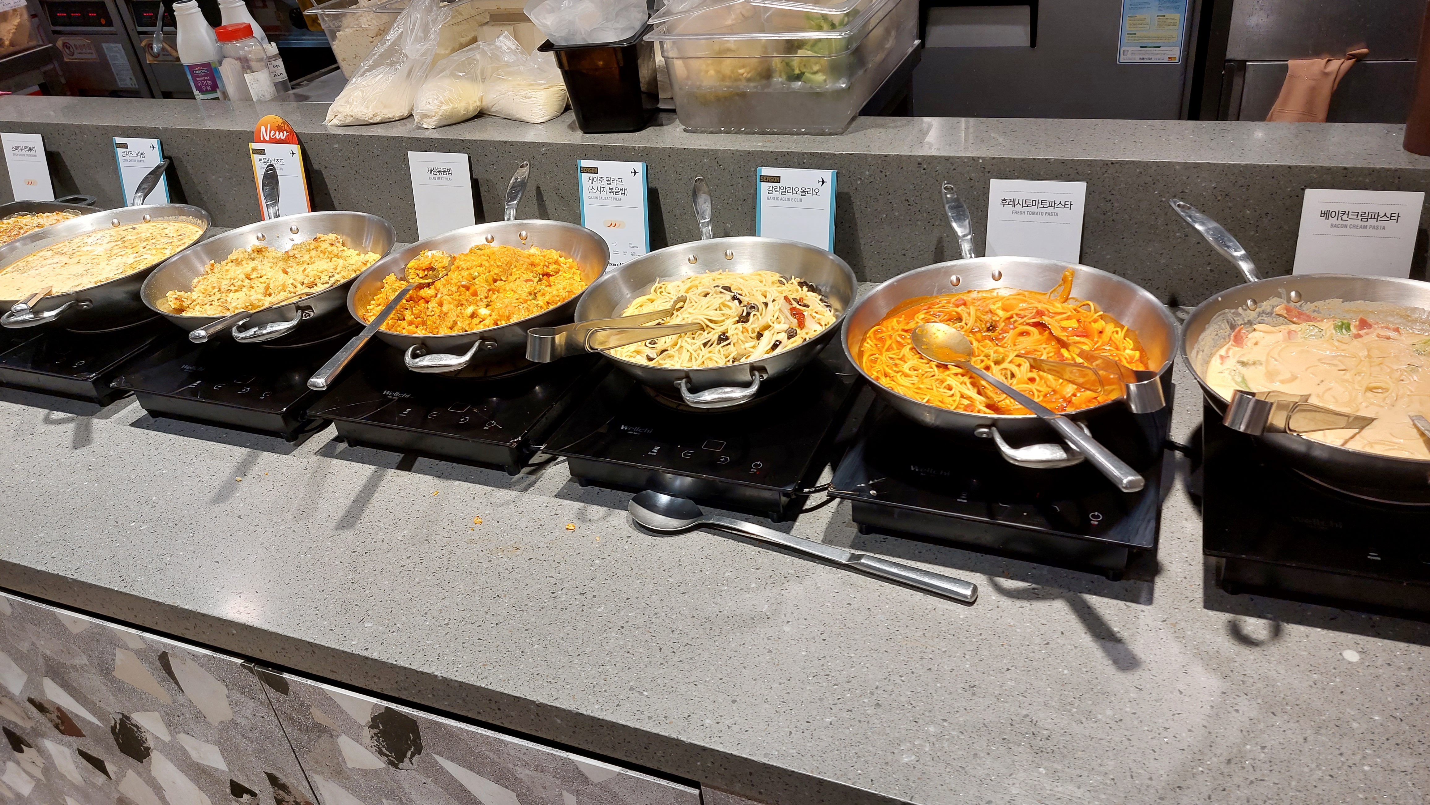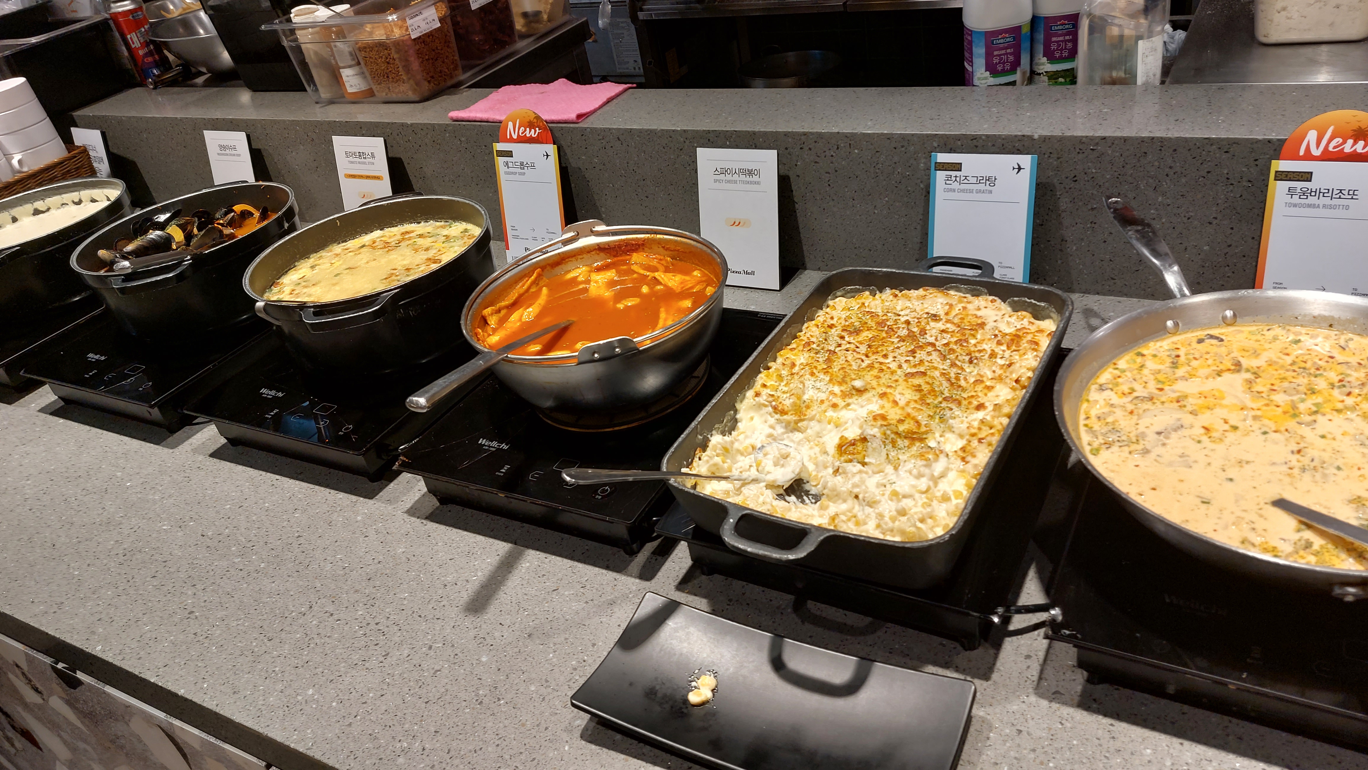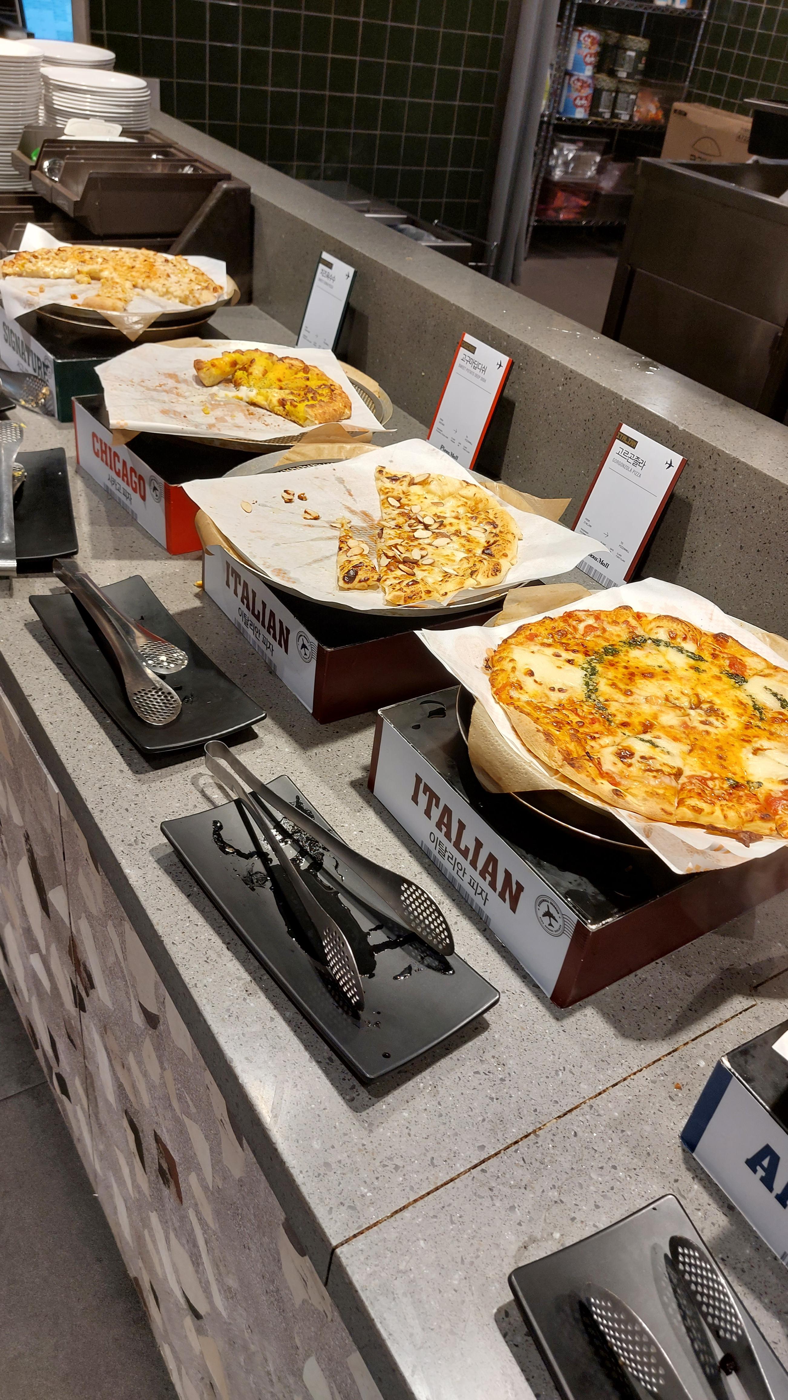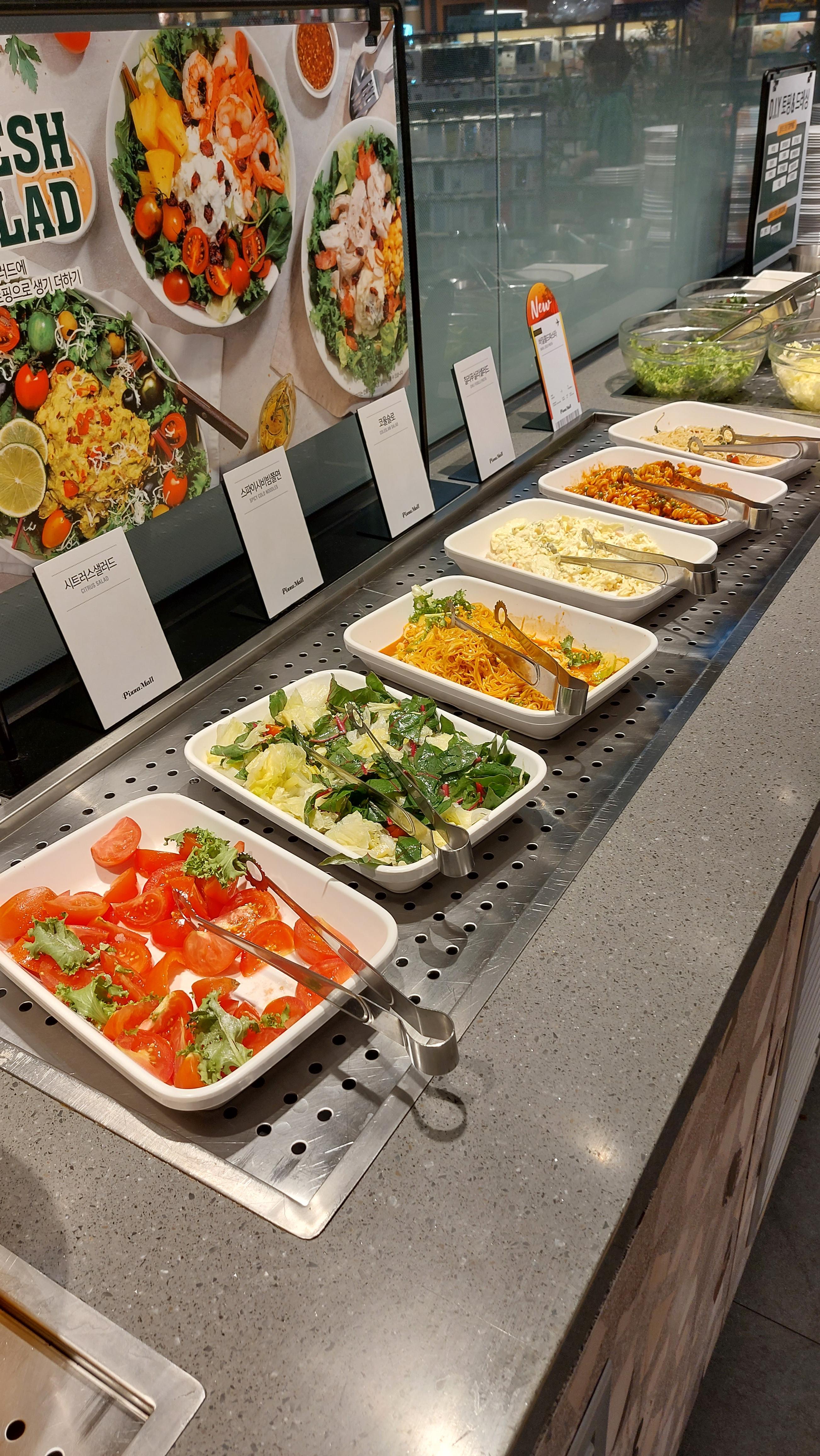 이외에도 다양한 음식들이 있으니 한 바퀴 둘러 보시고 피자를 부르시고 그 다음에 맛있는 음식을 퍼서 가시면 될 것 같습니다.