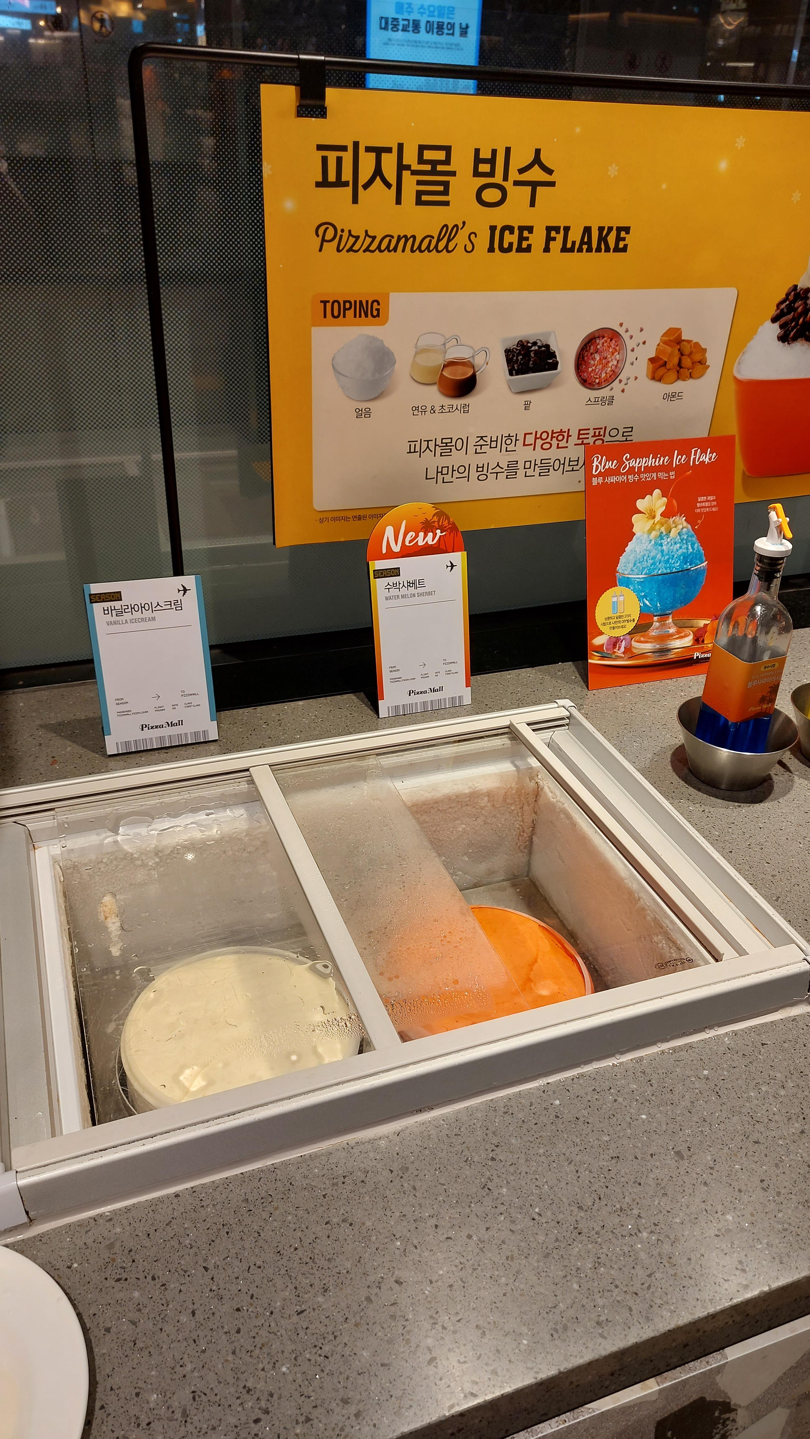 그런데 아이스크림 냉장고 뚜껑이 제대로 안 닫혀 있어서 바닐라 아이스크림이 많이 녹아있어서 아쉬웠습니다.