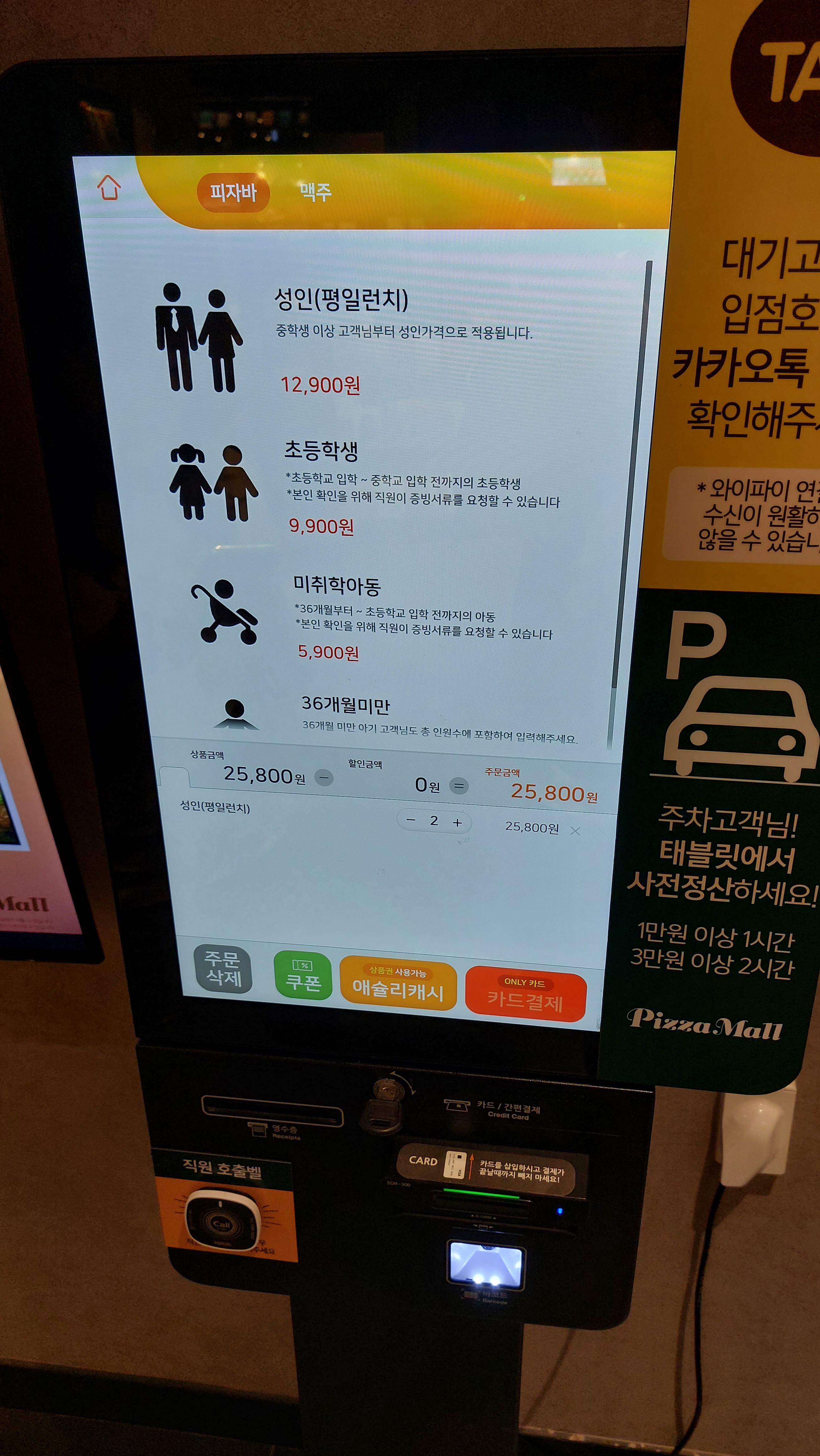 키오스크에서 알아서 결제를 하면 됩니다.