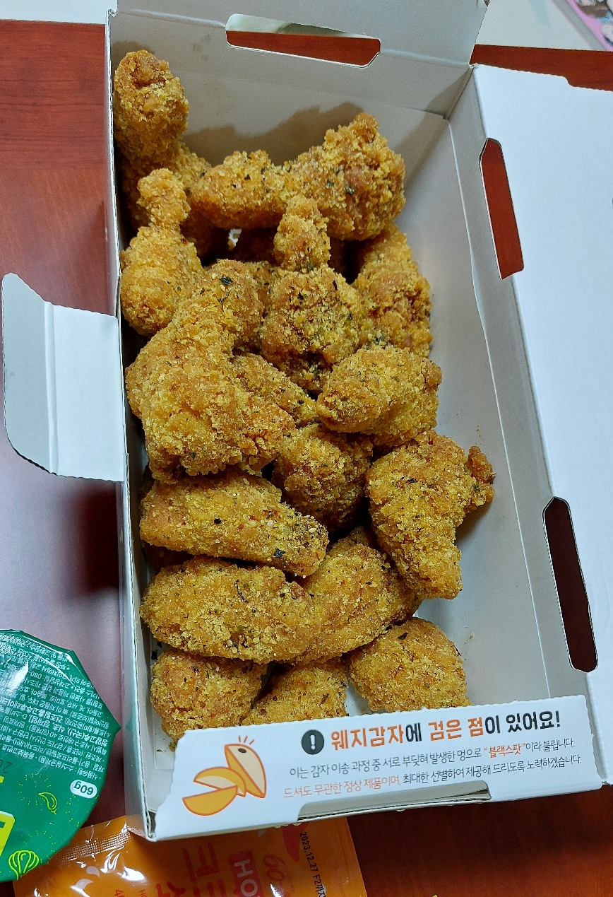 근데..겉에 튀김옷과 너무 아무런 양념이되어 있지 않아서치킨이 약간은 심심한 느낌이 드는것은 사실입니다.