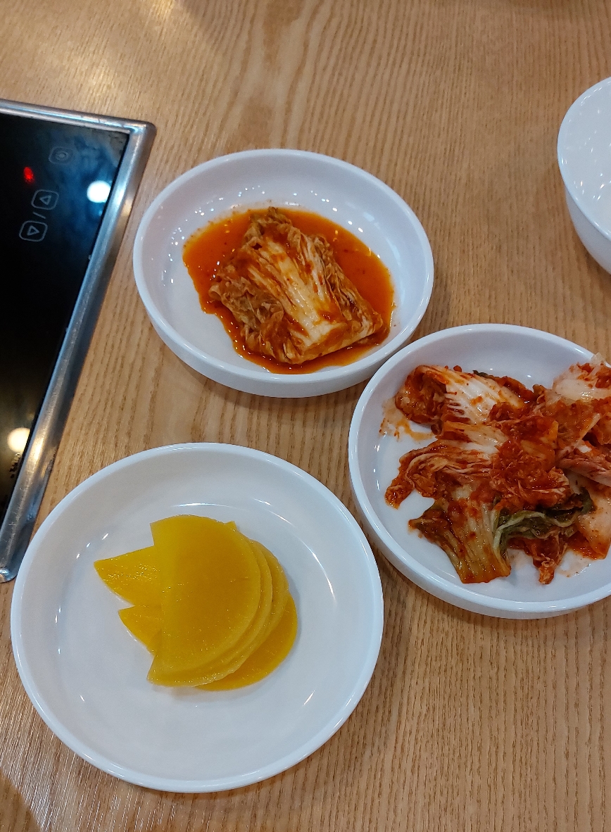 단무지가 나오는데.. 매운김치를 못드시는 분들은 샐러드 바에서 일반 겉절이 김치를 가지고 오심 됩니다.