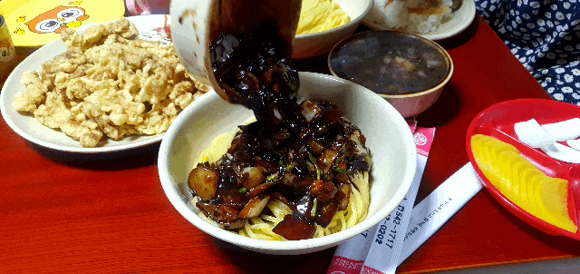 채울 배부른 곱빼기 간짜장이다.