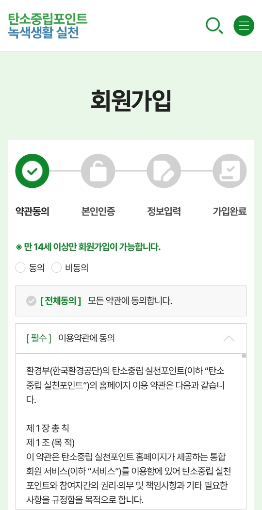 탄소중립포인트 받기 위해서 회원가입을 진행합니다.
