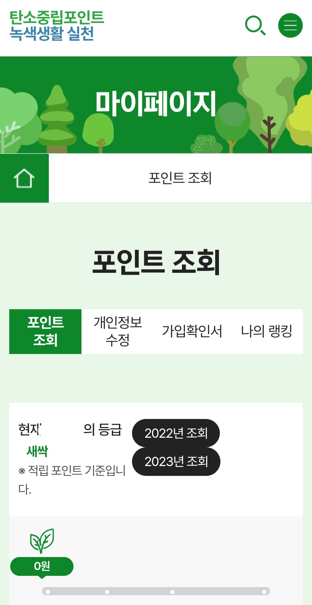 이렇게 하면, 현재 내가 얼마나 탄소중립 포인트를 쌓았는지 확인이 가능합니다.