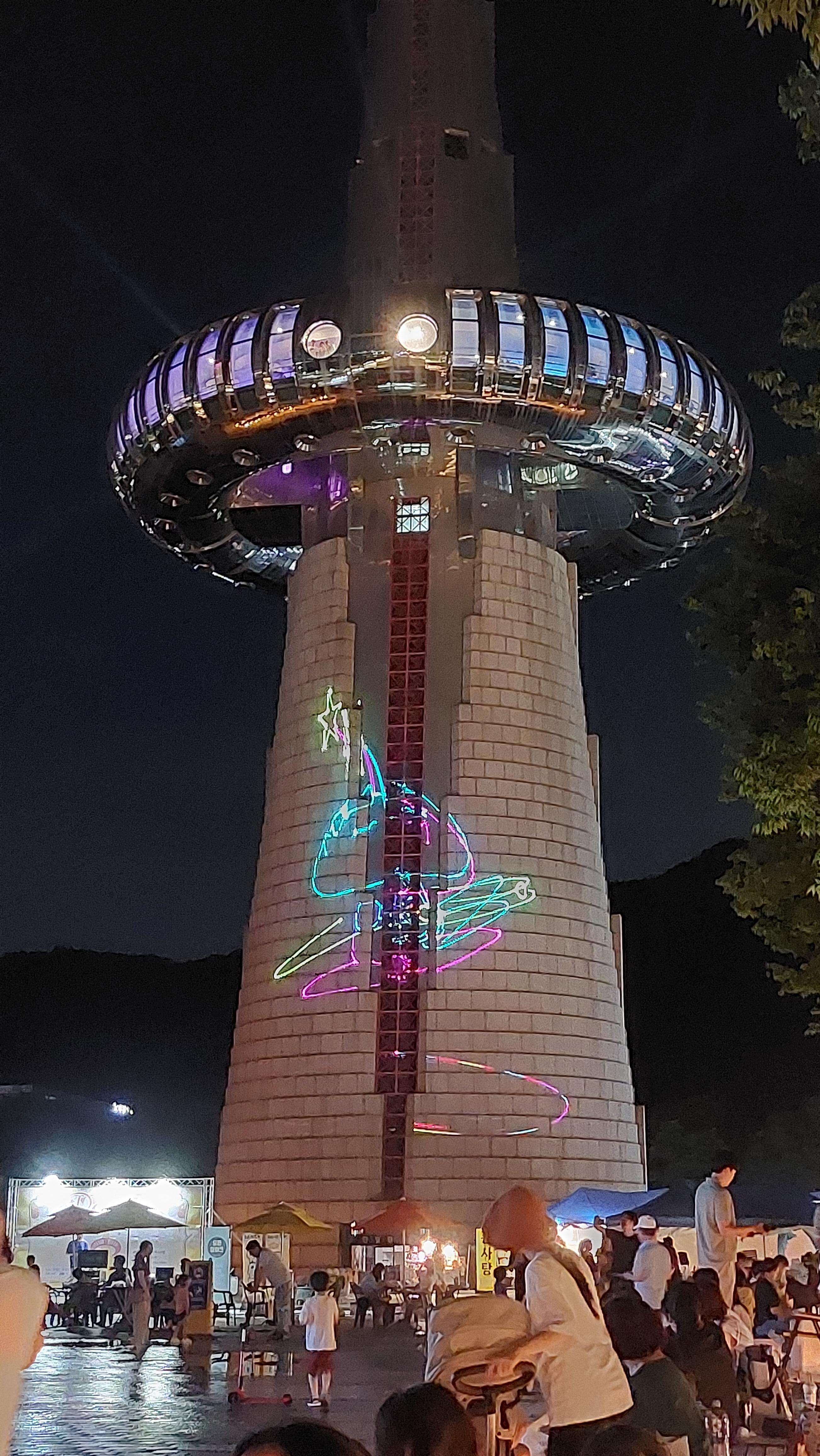이건 저녁에 밤에 딱 두 번만 하는 한빛탑 미디어 파사드 레이저쇼입니다.