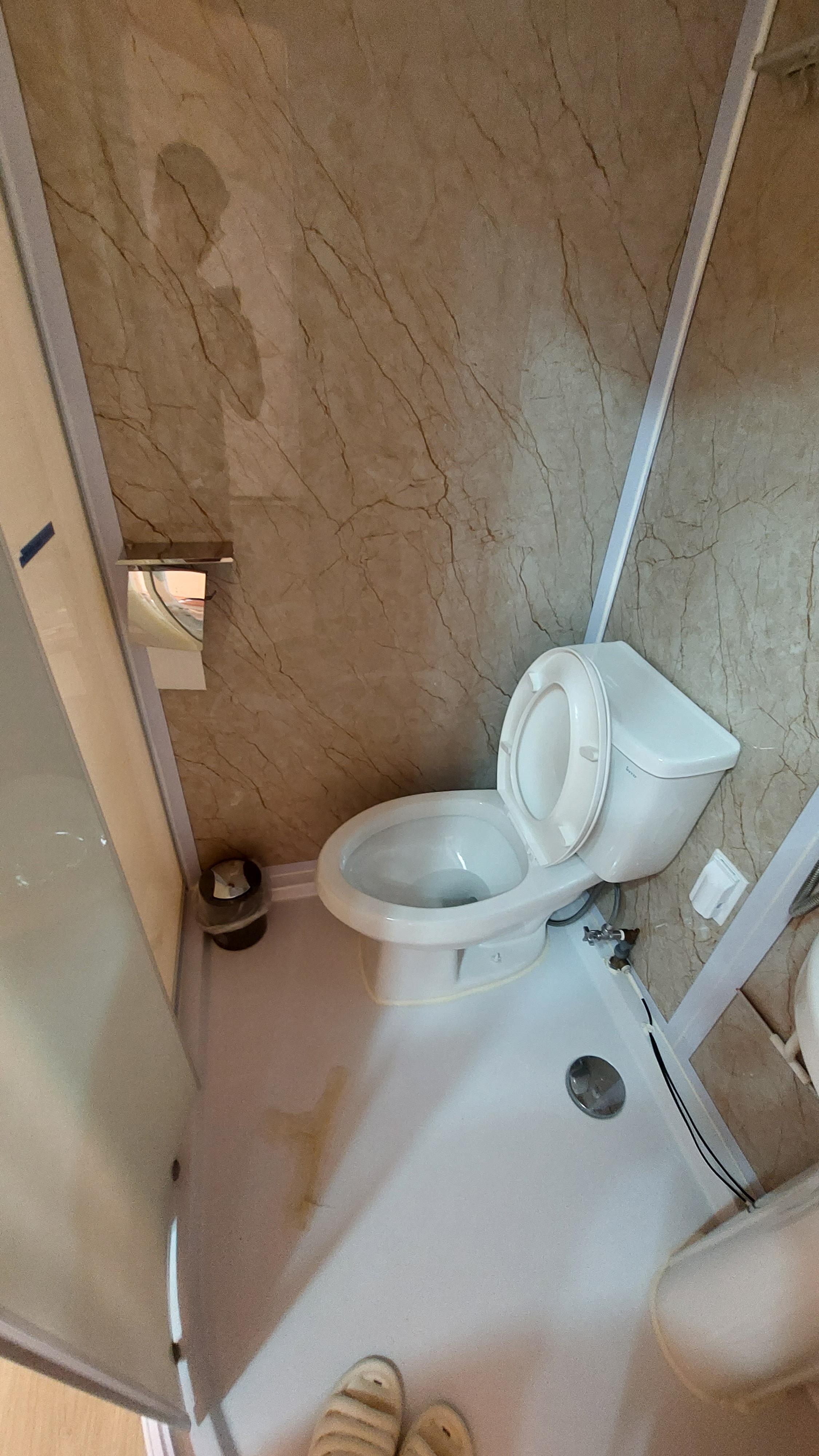 변기는 오른쪽 다리를 놓을 공간이 애매해서