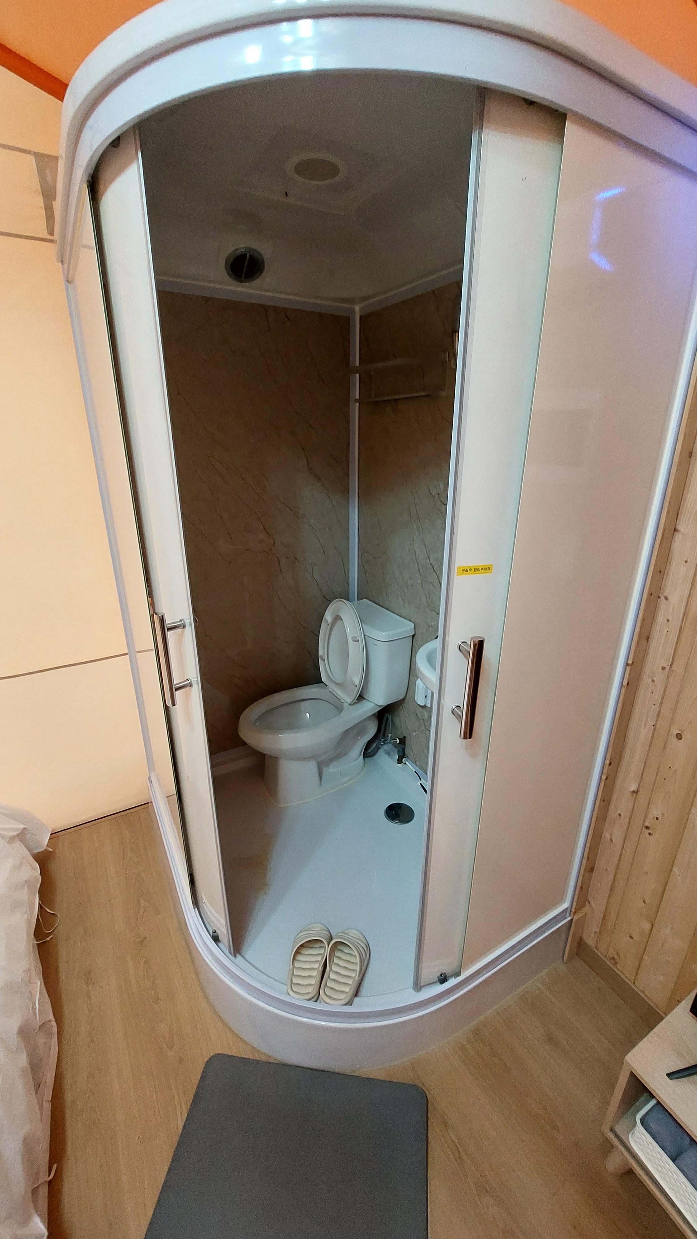 제가 지냈던 20번 텐트의 욕실 바닥이 깨져 있어서.. 화장실 이용하는데.. 약간의 불편함이 있긴 했지만.. 여기가 글램핑이라고 생각하면 이정도면 됐지 하게 됩니다.