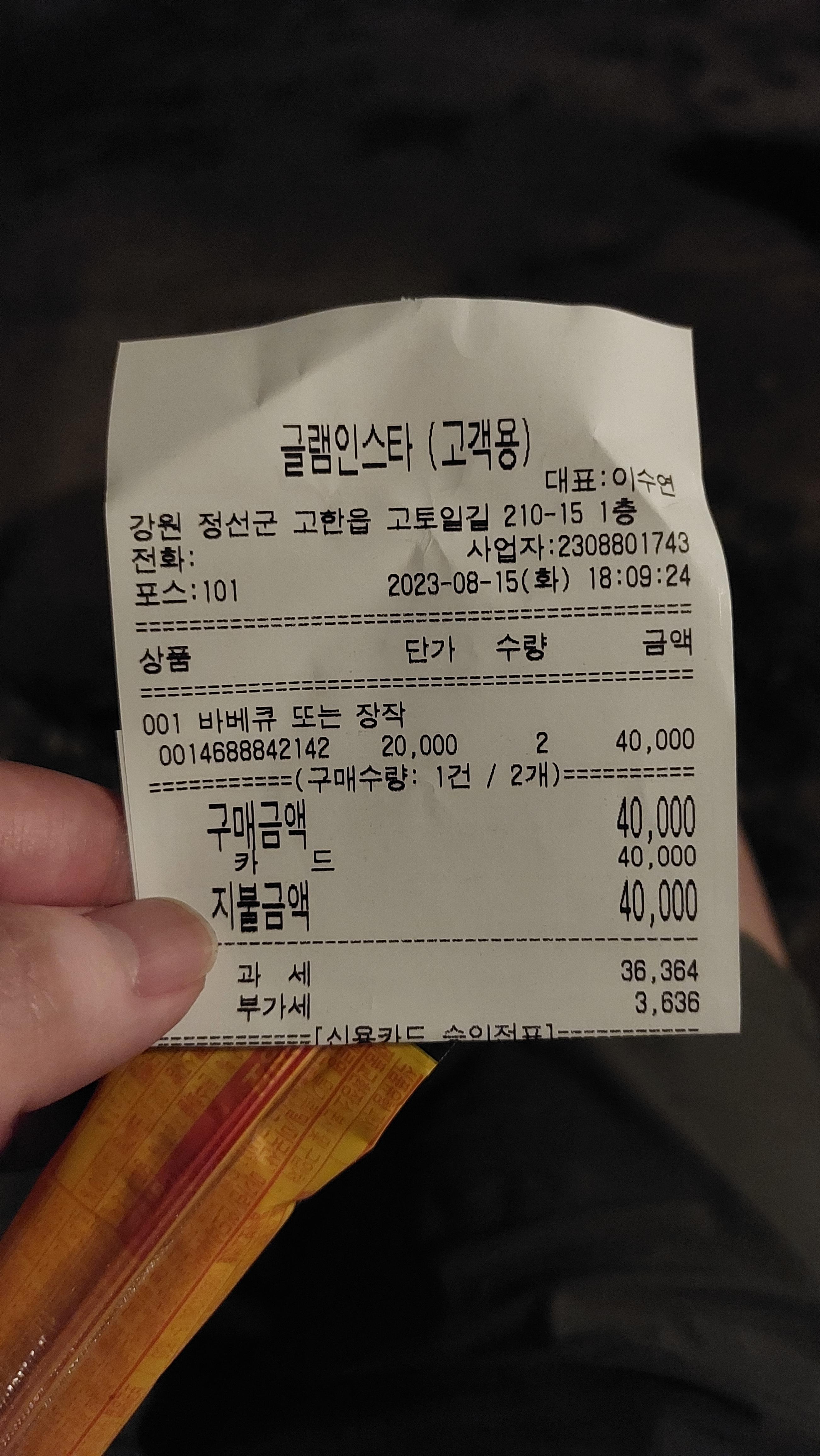물론 가격은 일반 편의점보다 20~30% 더 비싸긴 하지만.. 글램핑의 특성상 왠만큼 음식을 싸가지고 오기 때문에..
