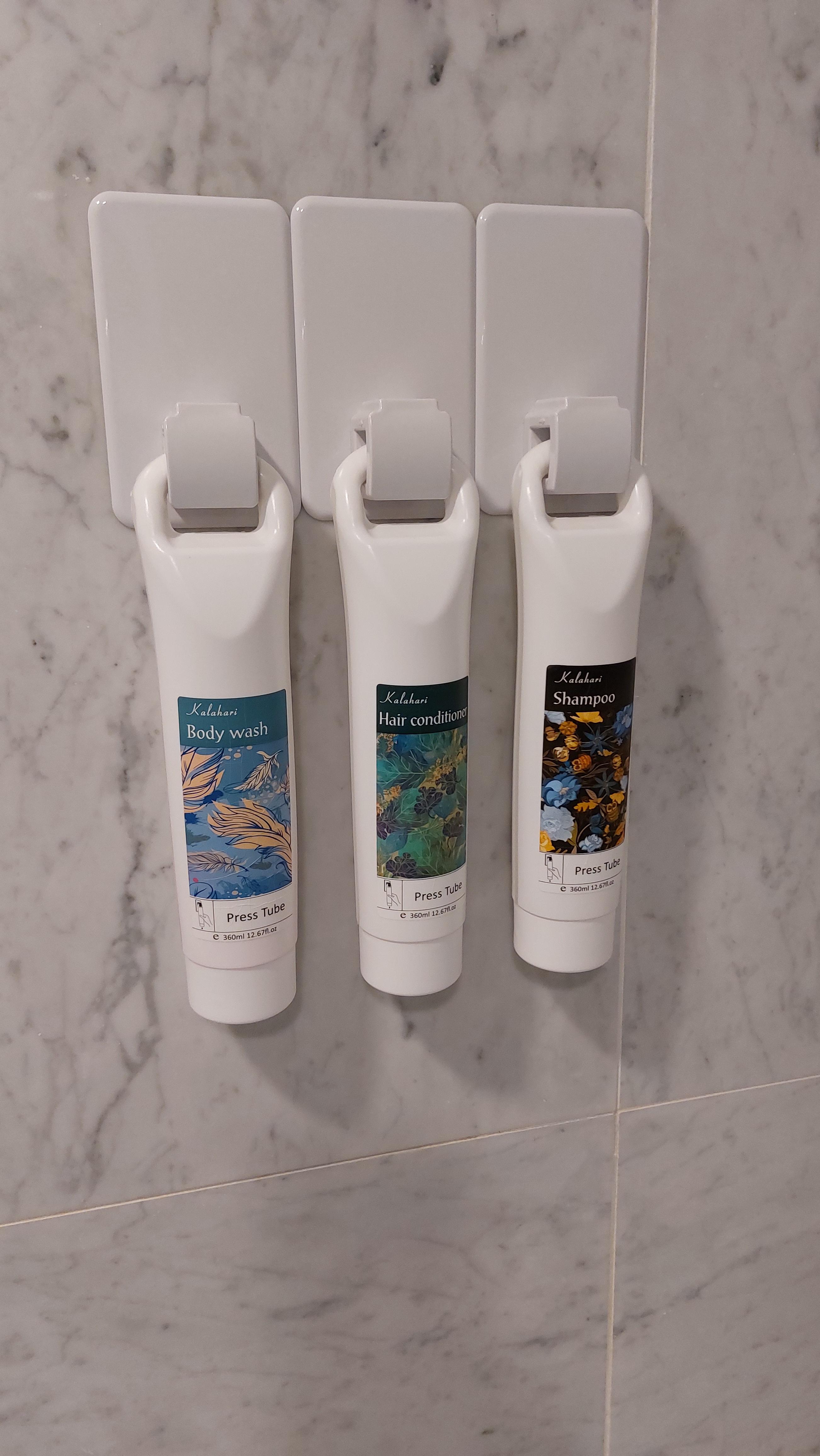 샤워 용품은 이렇게 대용량을 벽에 붙어 있으며, 치약처럼 짜서 사용이 가능합니다.