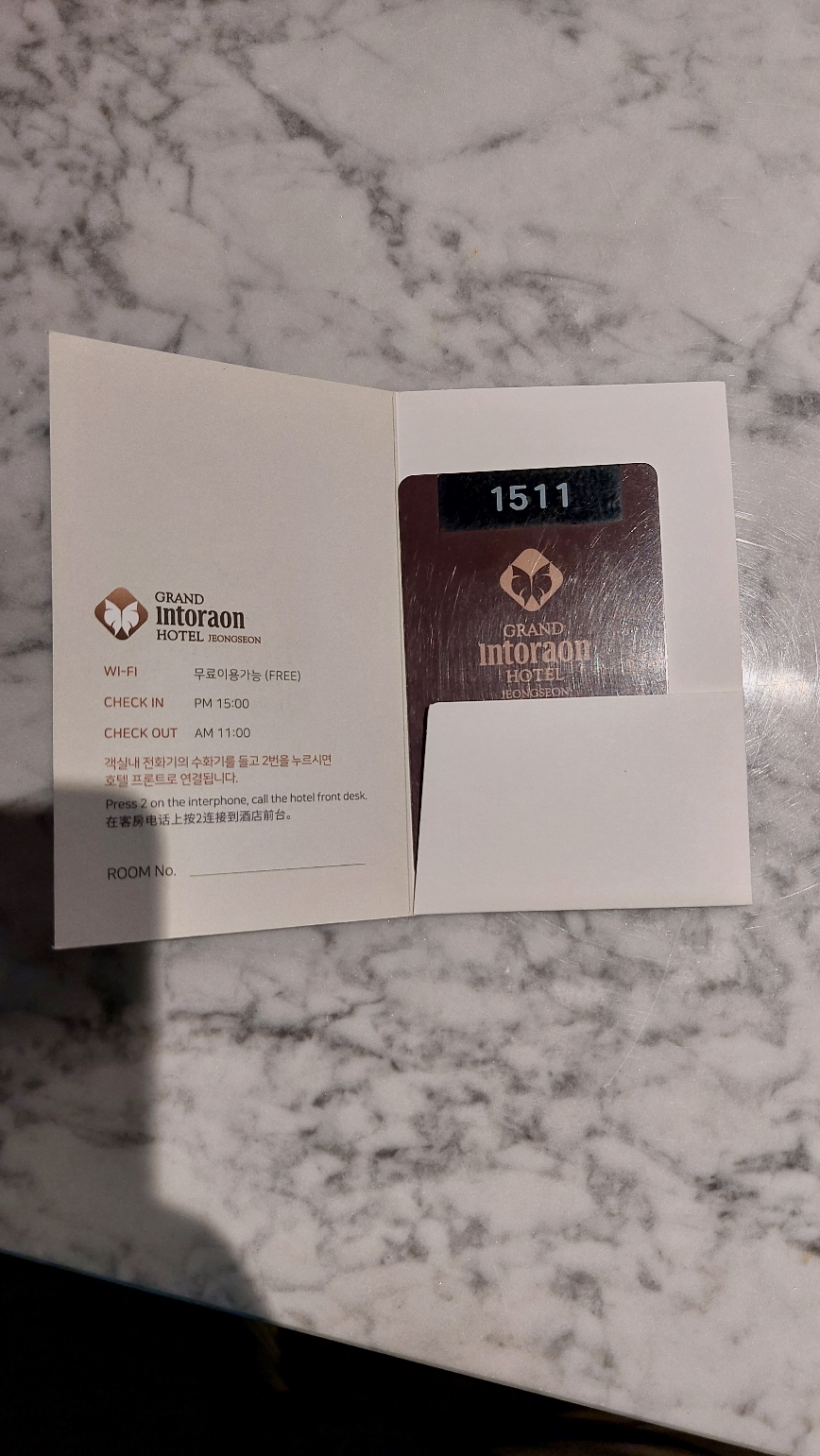 체크인을 하고 15층으로 배정을 받고 15층으로 향했습니다.