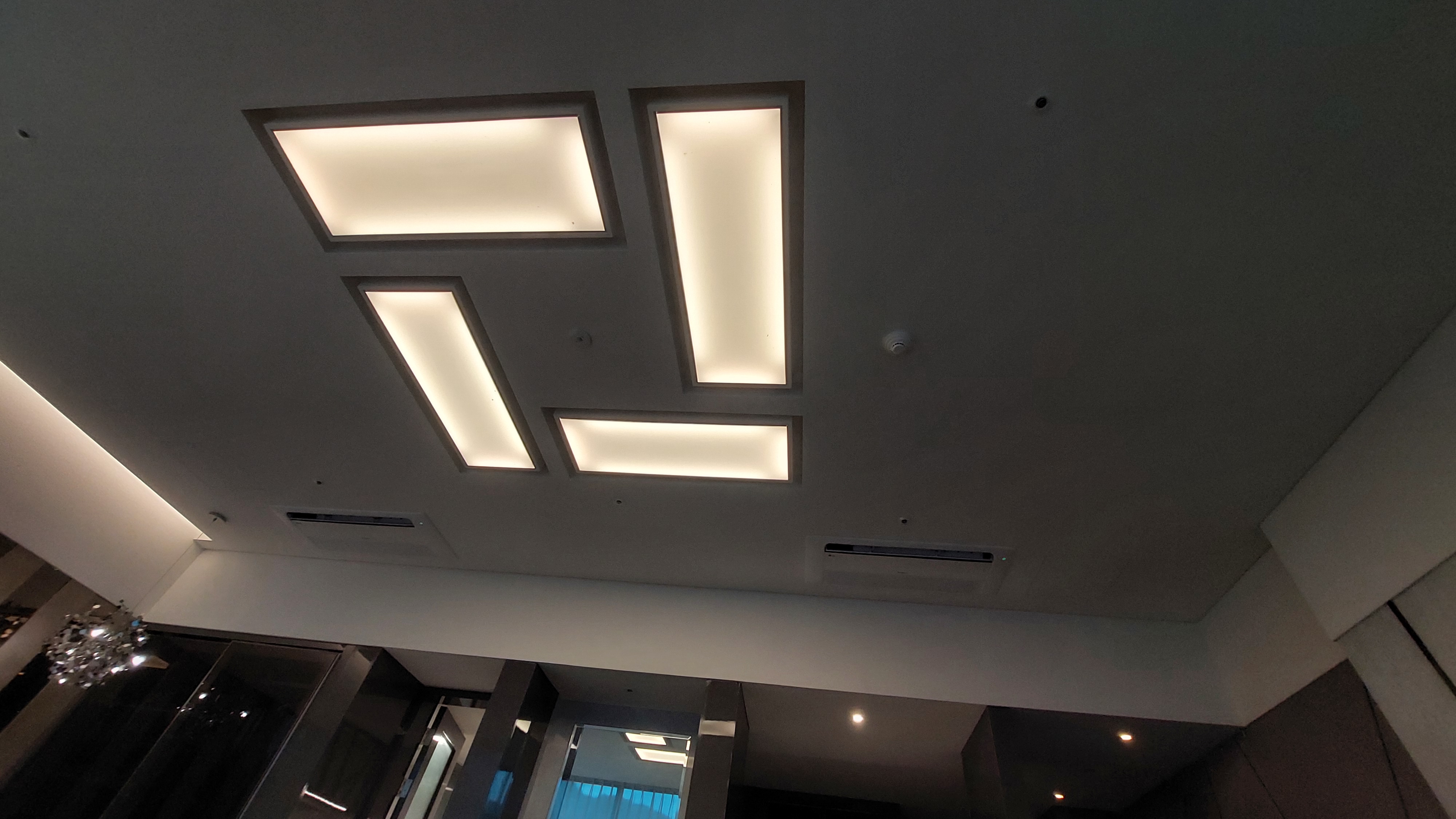 천장등은 네모난 등이 4가지고 느낌있게 설치 되어있으며,