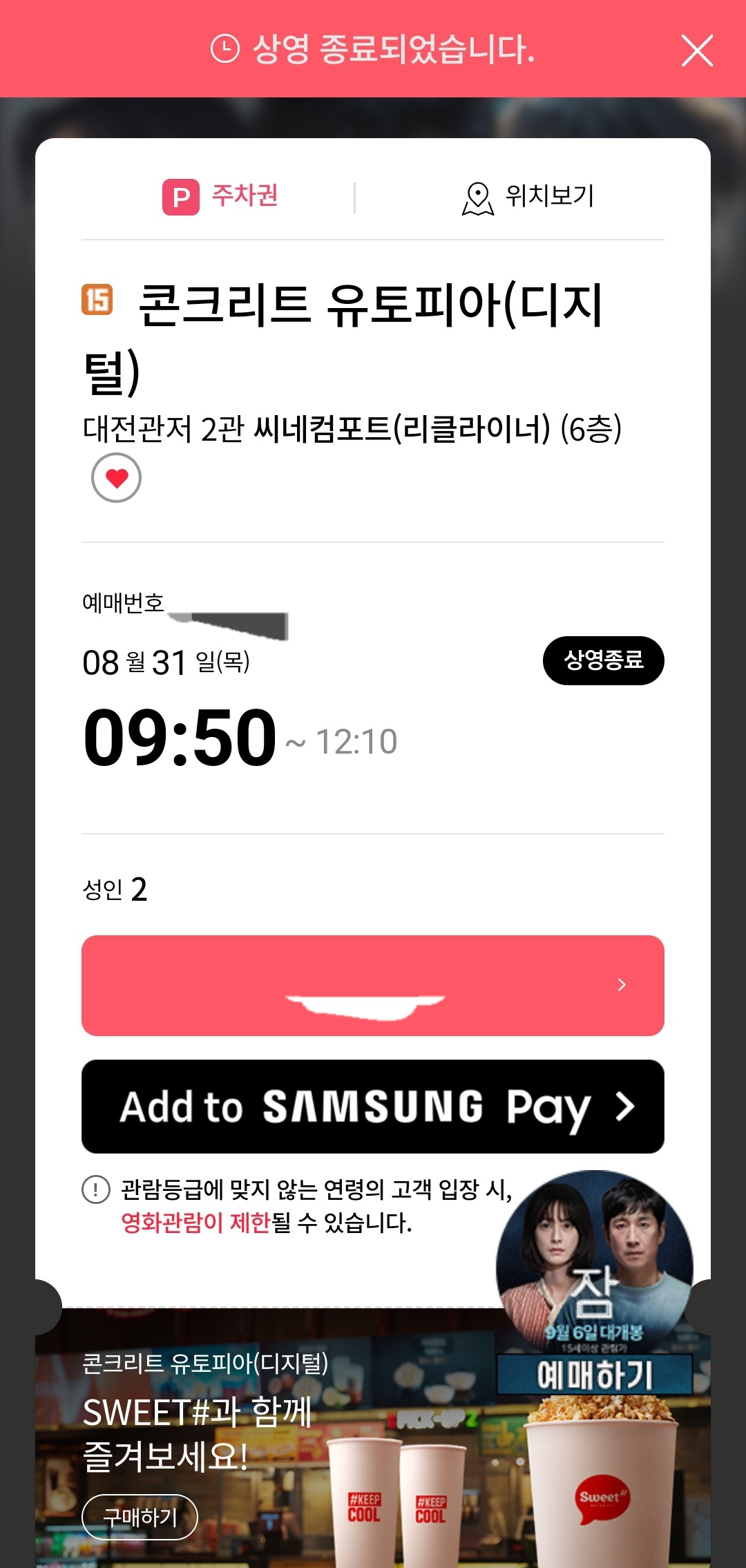 롯데시네마 대전 관저점에서 봤고 시내 컴포트에서 봤는데