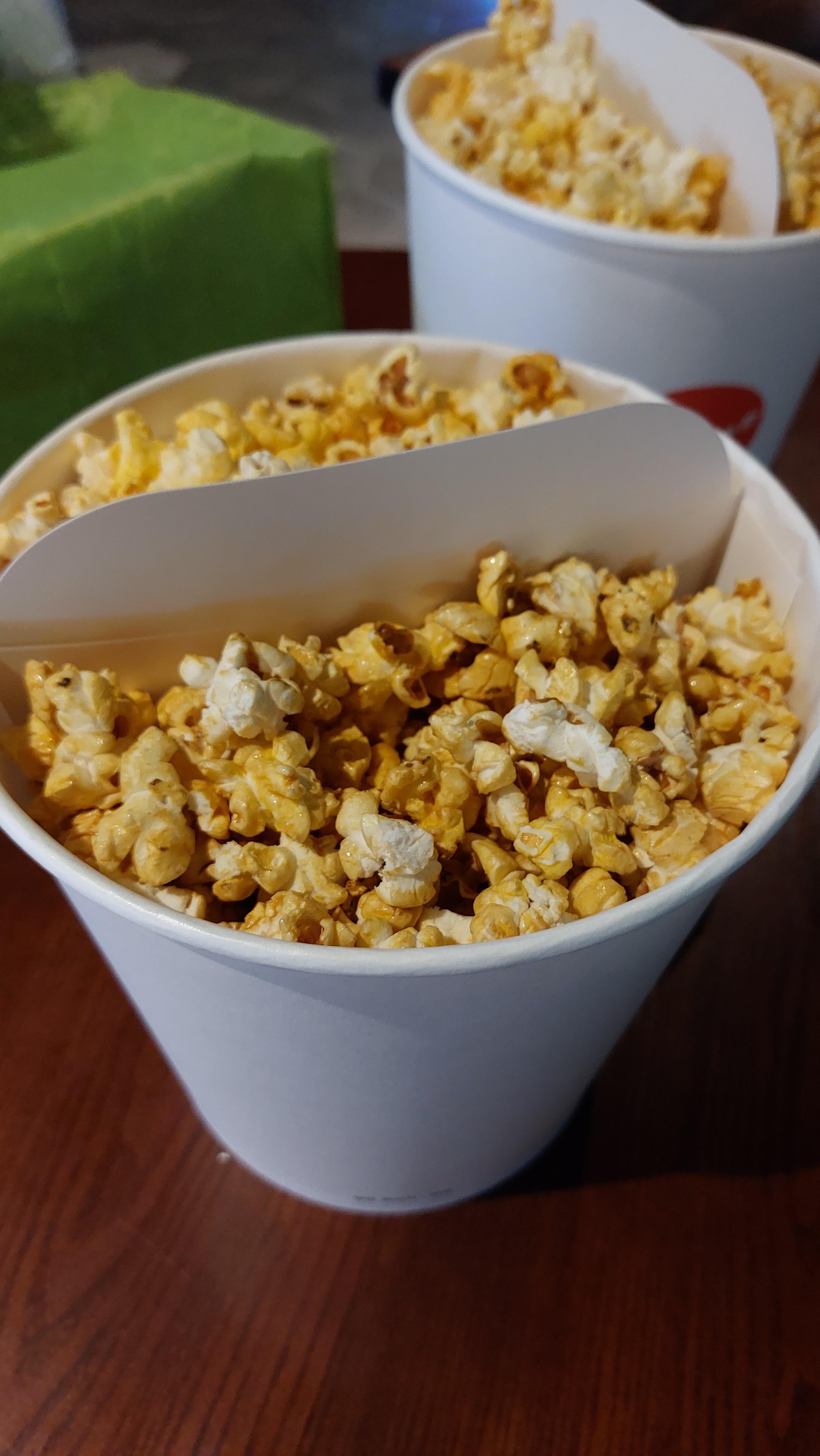 밥을 먹고 가지 않아서 팝콘 라지 사이즈 두 개를 시켜서 하나는 와이프 하나는 저
