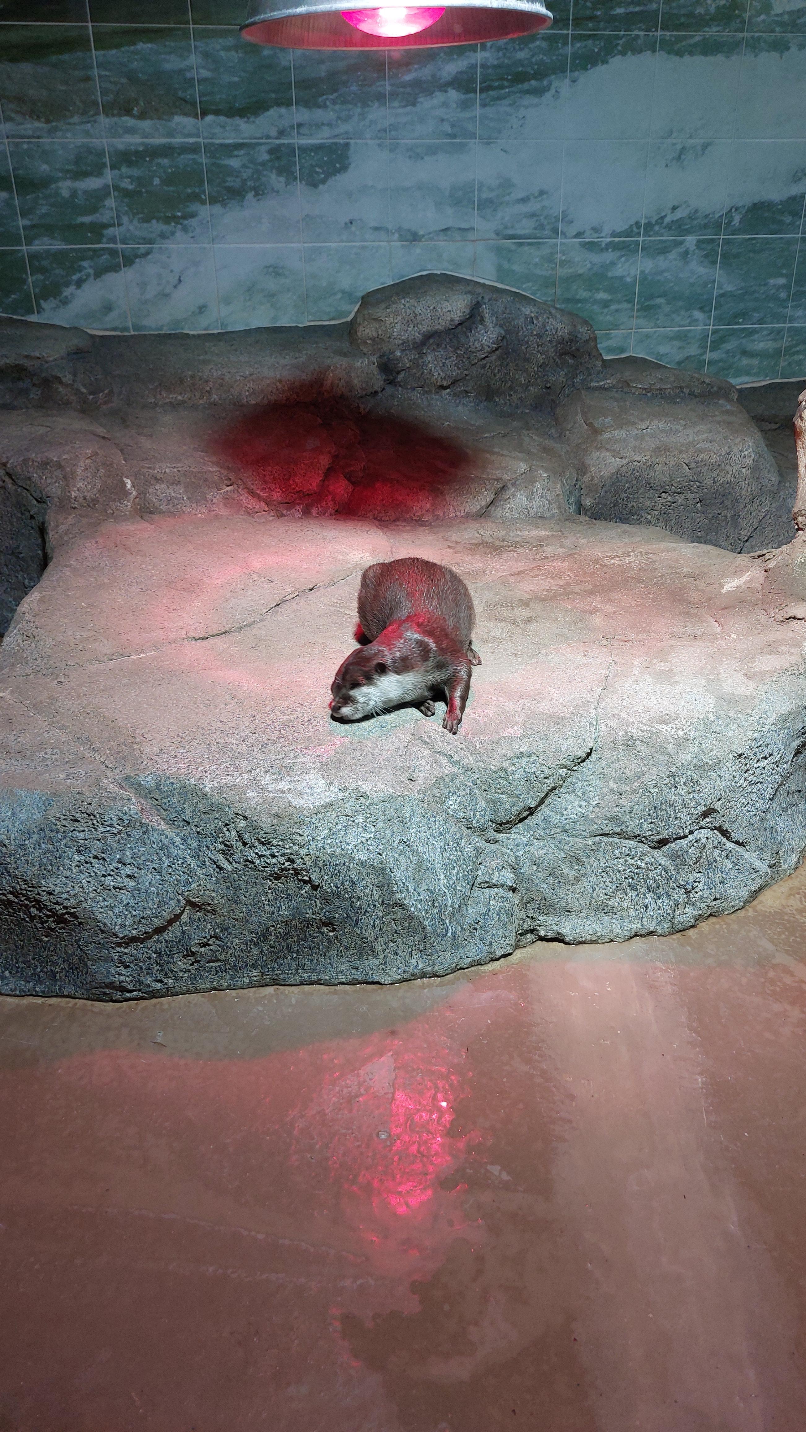 등이 간지러운지 계속 돌판에서 뒹굴거리면서 등을 긁고 있는 수달입니다.