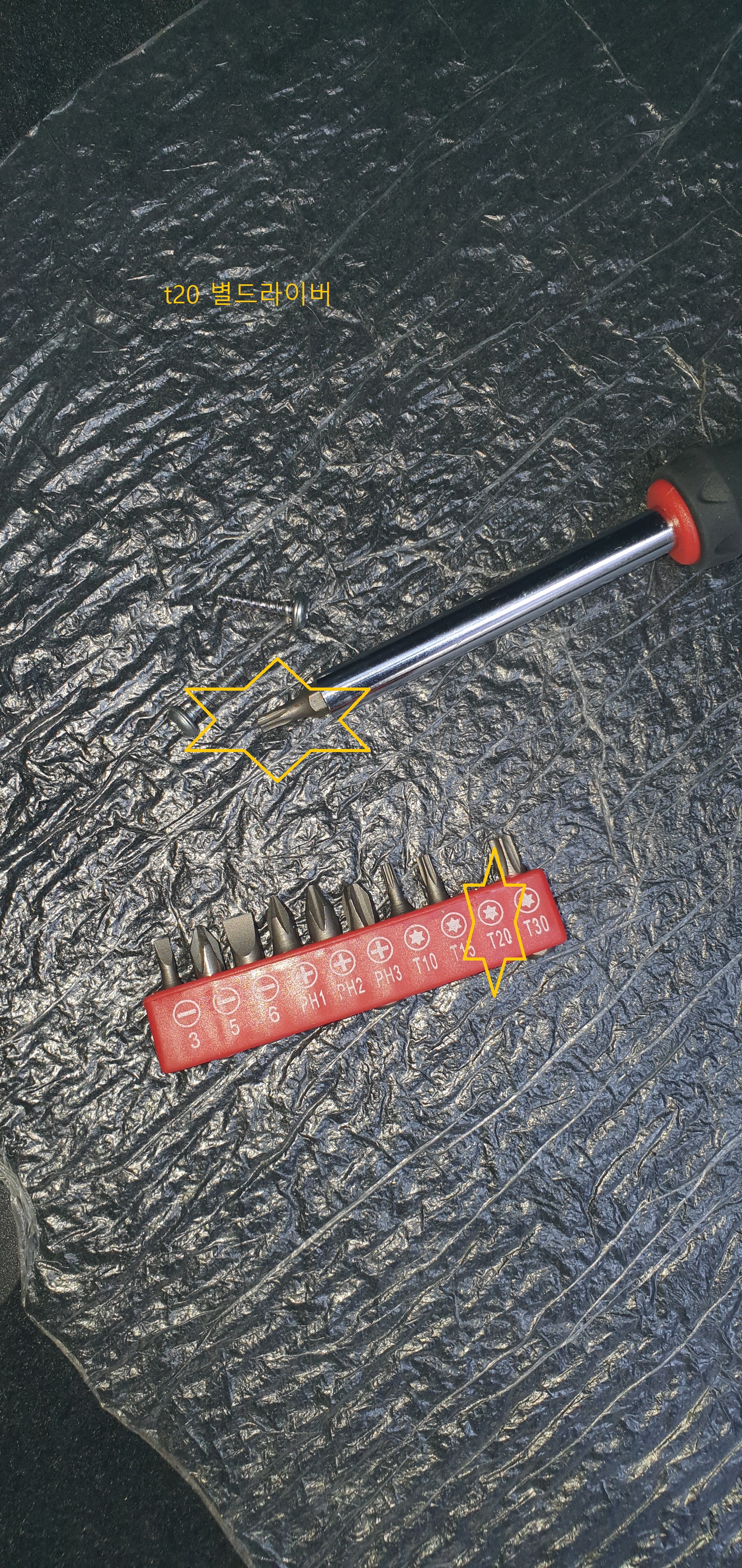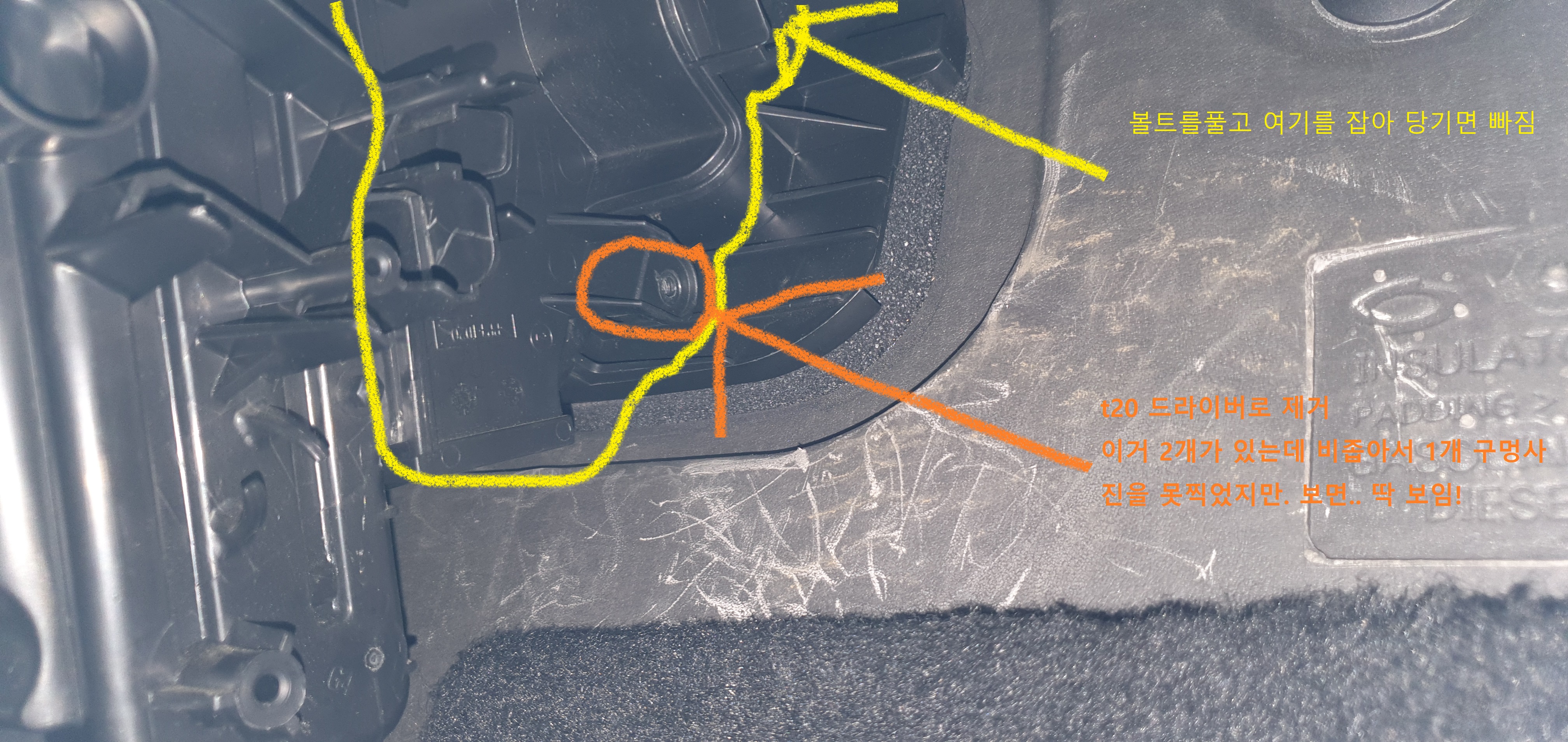 t20 별드라이버로 2개 볼트빼내고 노란색으로 표시한 곳을 잡아 당기면 커버가 빠짐
