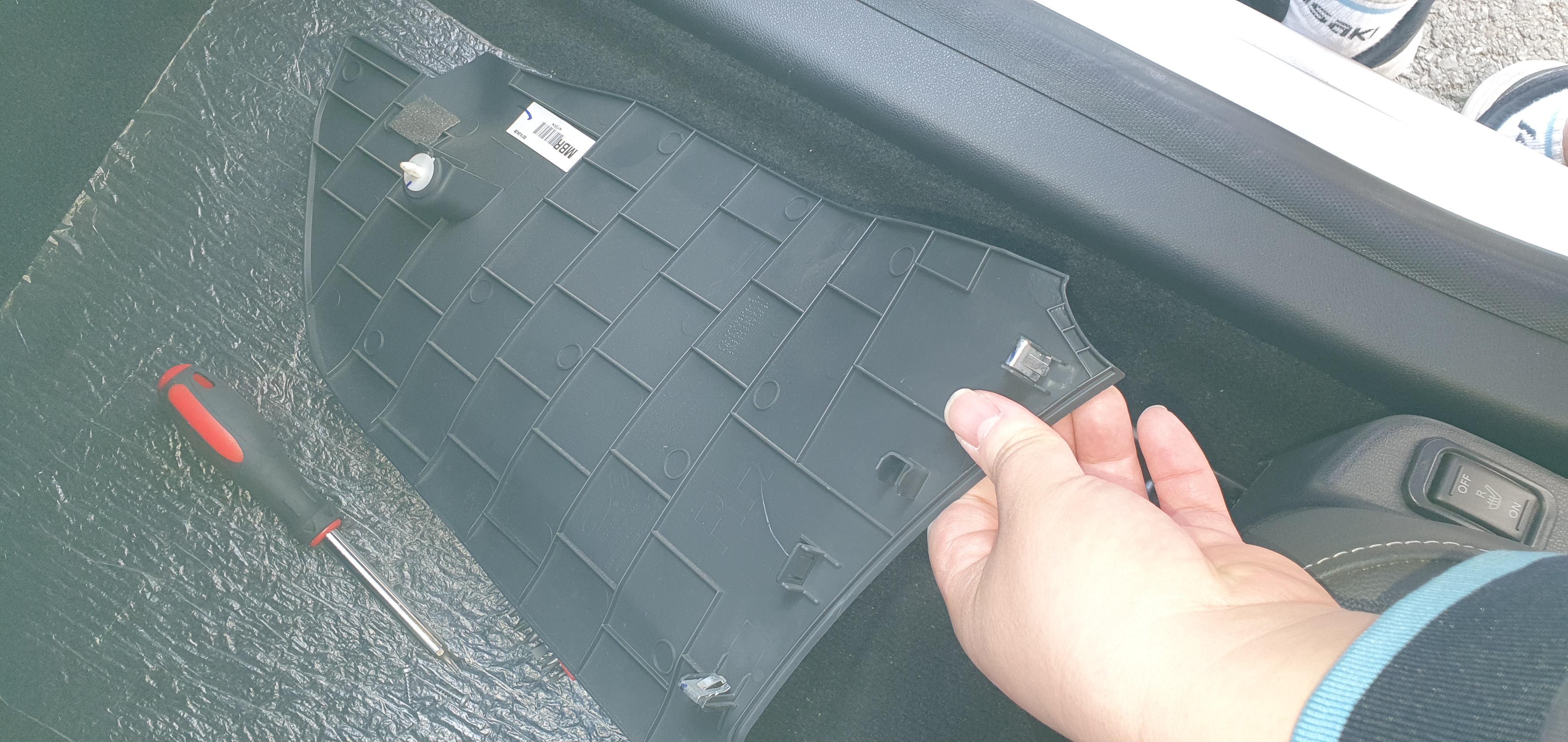 이렇게 준비가 되면 보조석 센터 사이드 판넬을 빼버립니다.