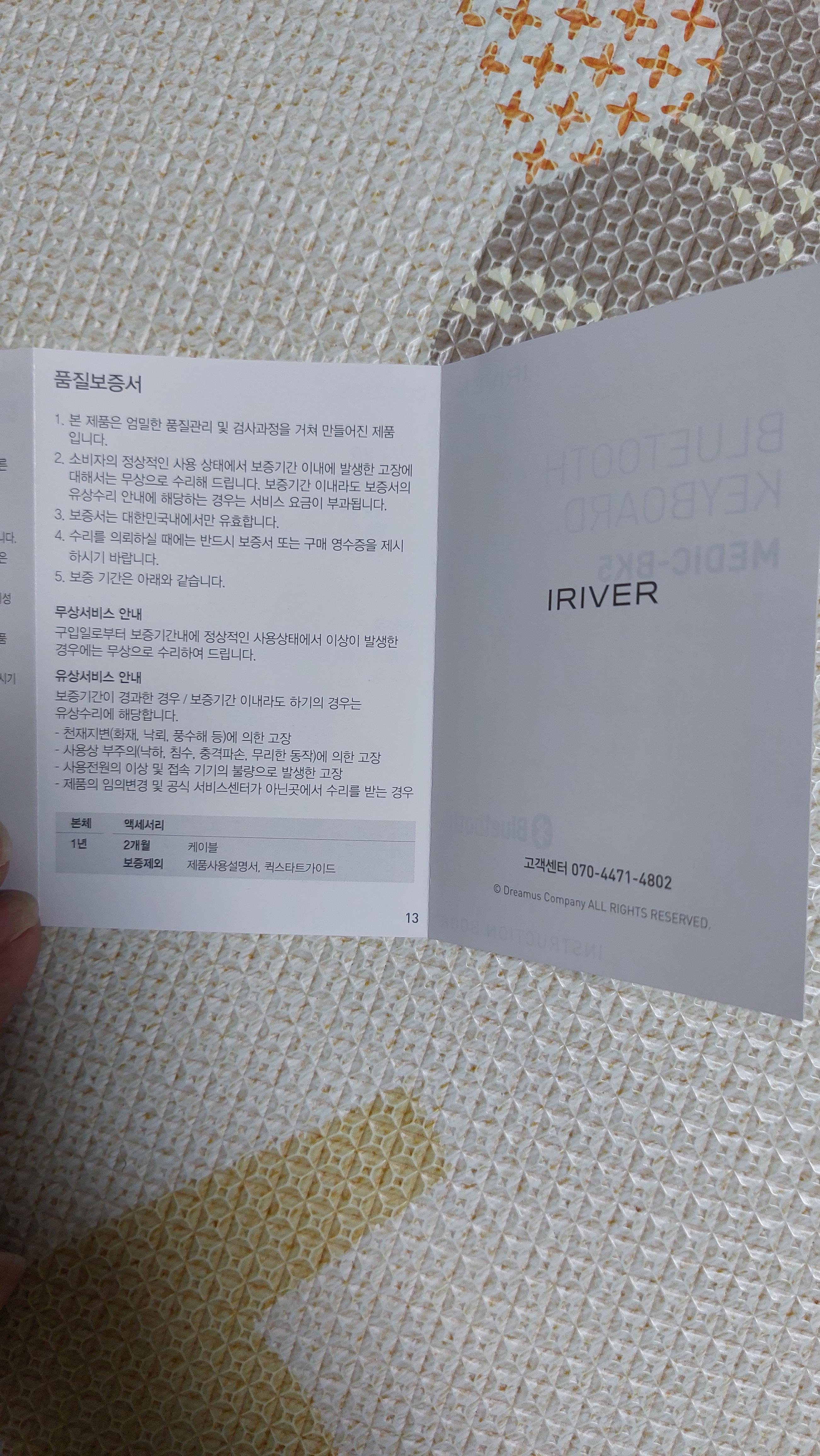 아이리버 키보드 메뉴얼을 사진으로 찍어 놨으니, 아래 사진을 참고하시길 바랍니다.