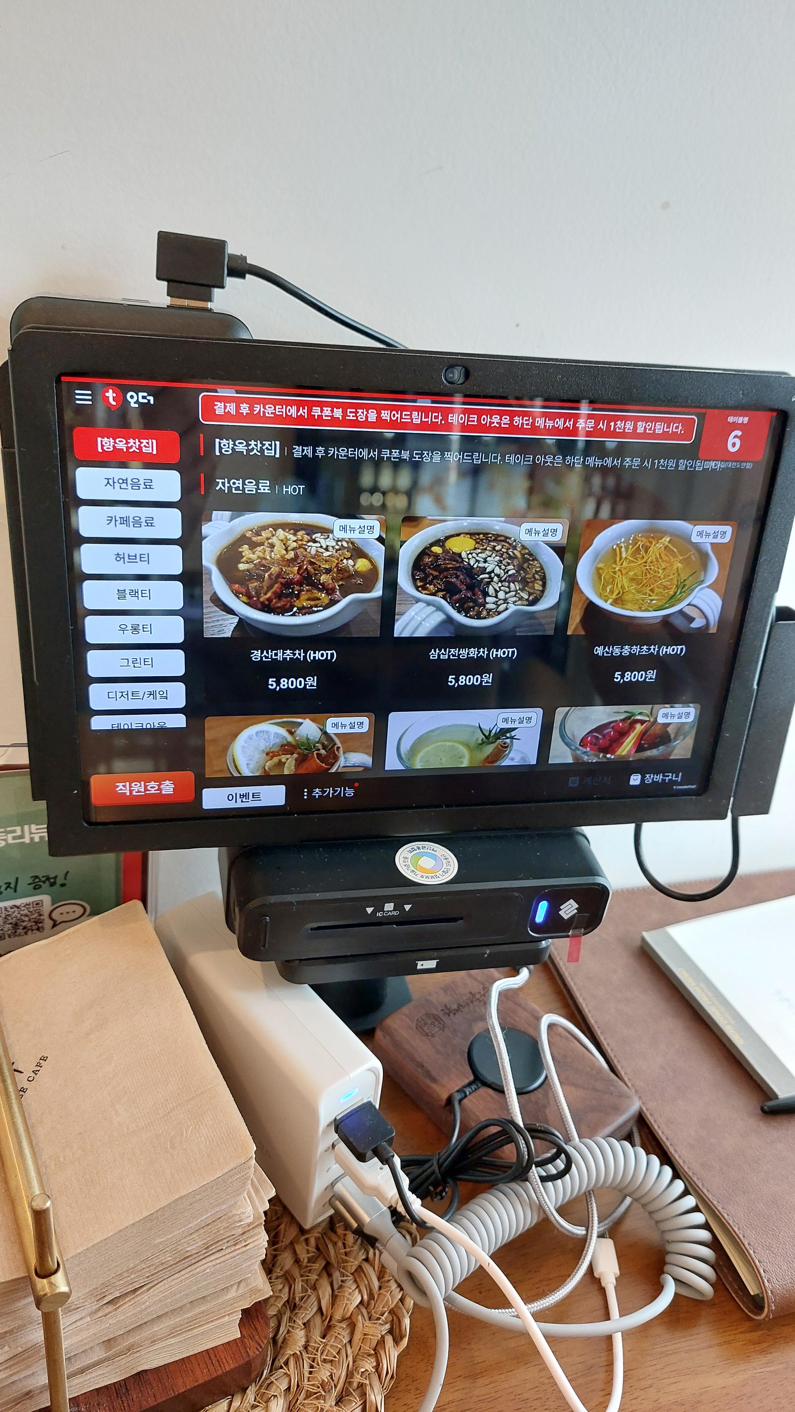 다인이 앉을 수 있는 6인석 테이블도 존재하고 모든 테이블마다 주문기가 달려 있어서 이걸로 편하게 주문하면 됩니다.