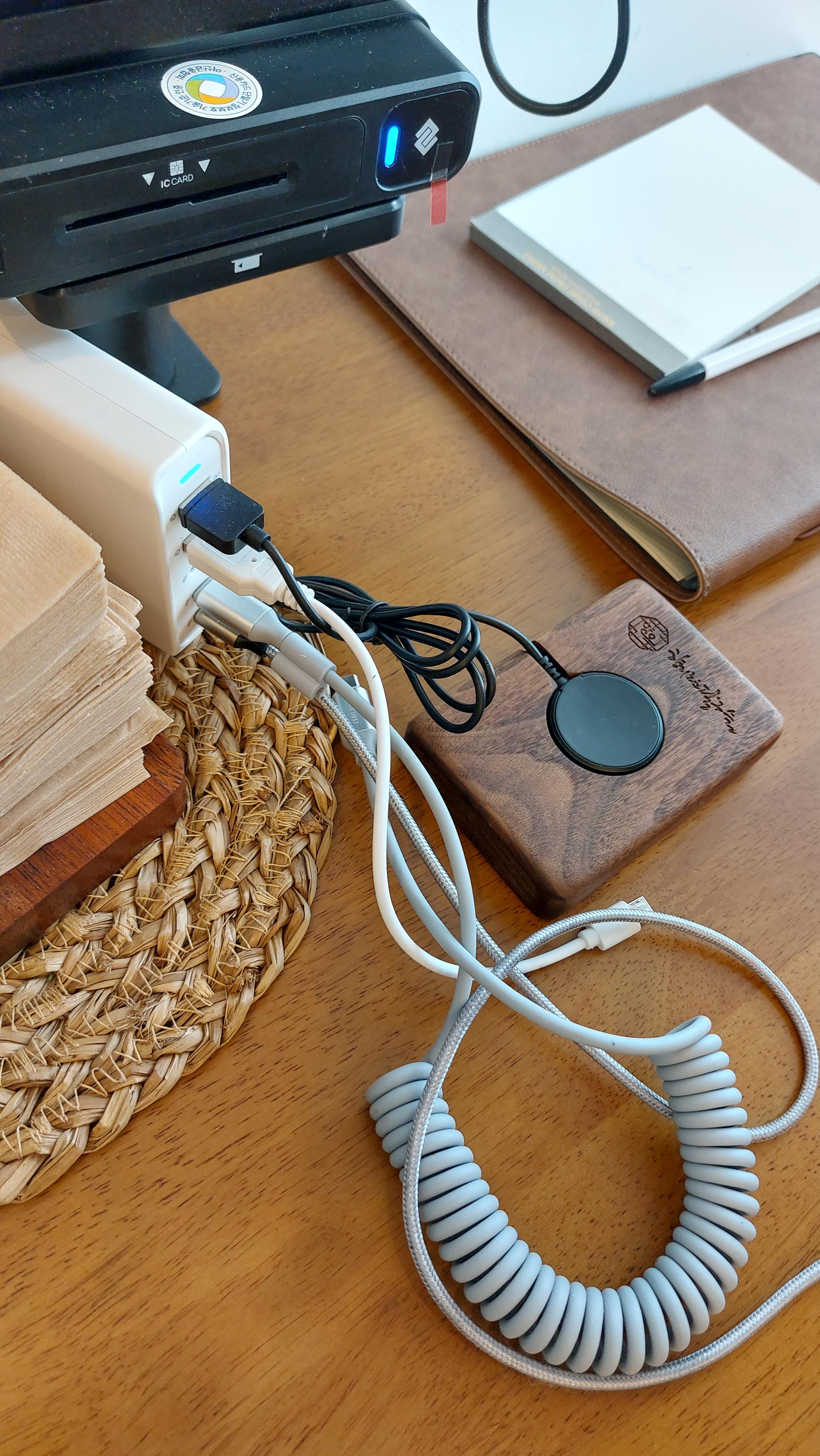 충전기는 모든 휴대폰을 다 충전할 수 있는 모듬 충전기를 놨고요.