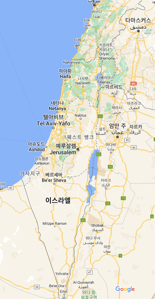 구글지도로 살펴보니, 팔레스타인이라는 나라는 전혀 나오지 않습니다.
