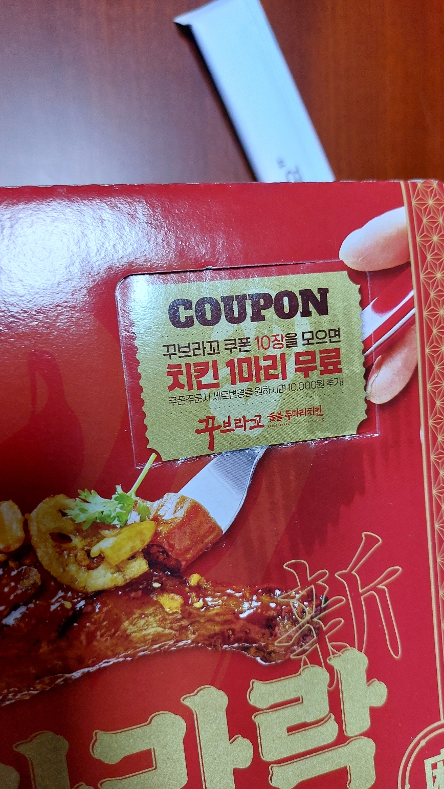 이 꾸브라꼬 치킨 쿠폰은 2마리세트를 시켜야지만 받을수 있습니다.
