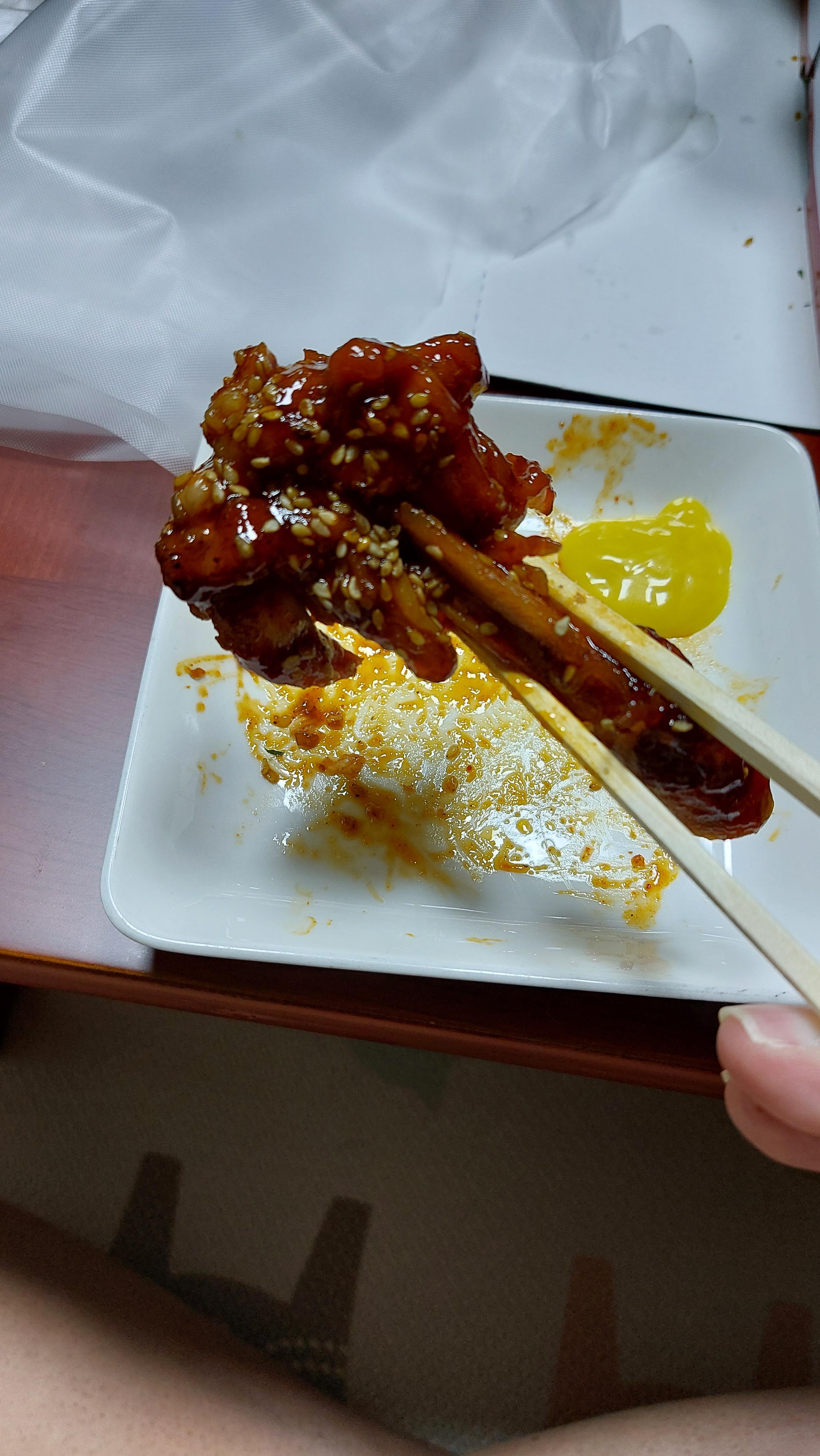 숯불 치킨은 약간 매운맛인데.. 오늘은 평소보다 덜 맵게 느껴집니다.