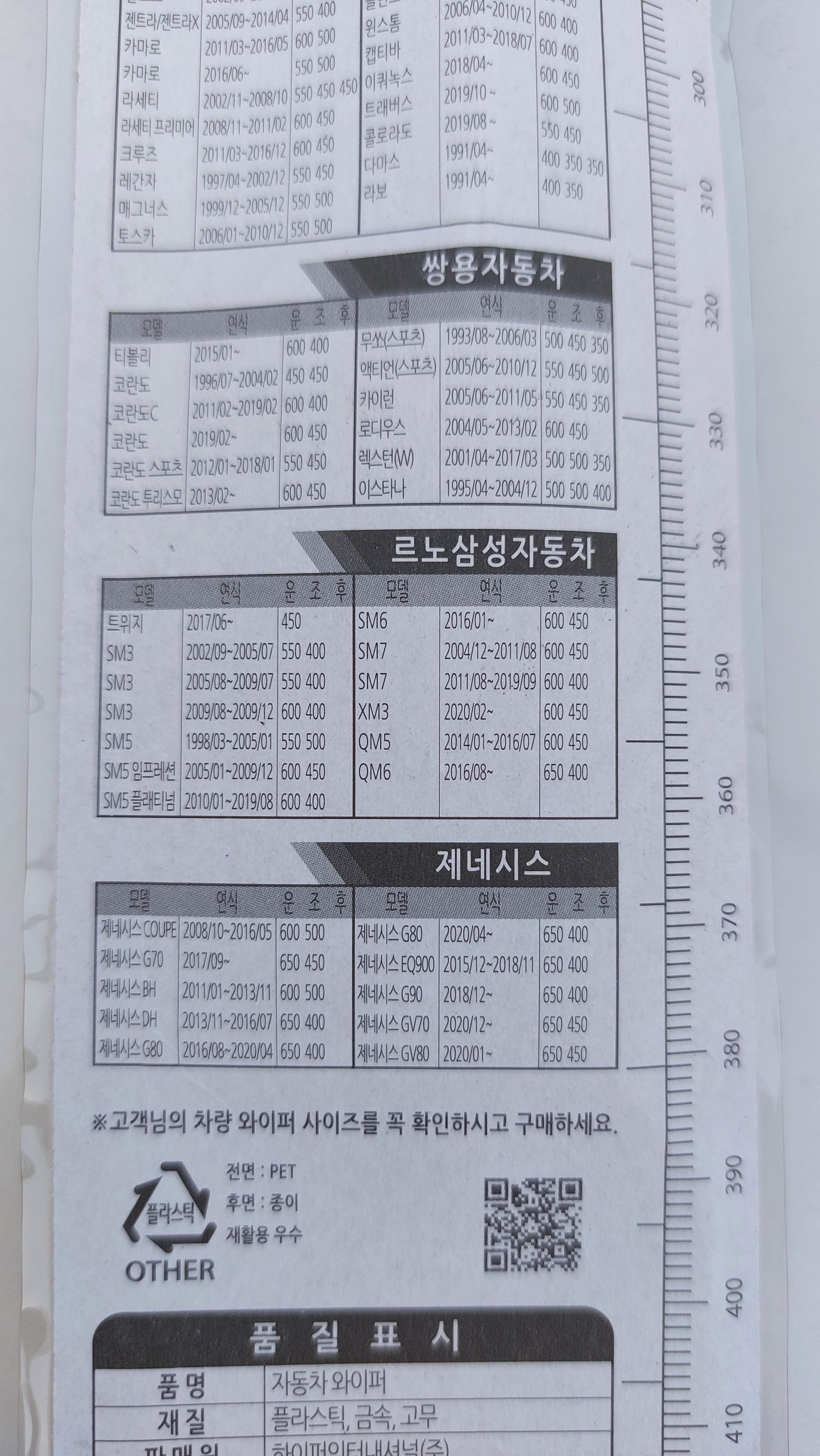 미쉐린 와이퍼 여긴 600+400mm 사이즈 2개다 11000원이구나;;