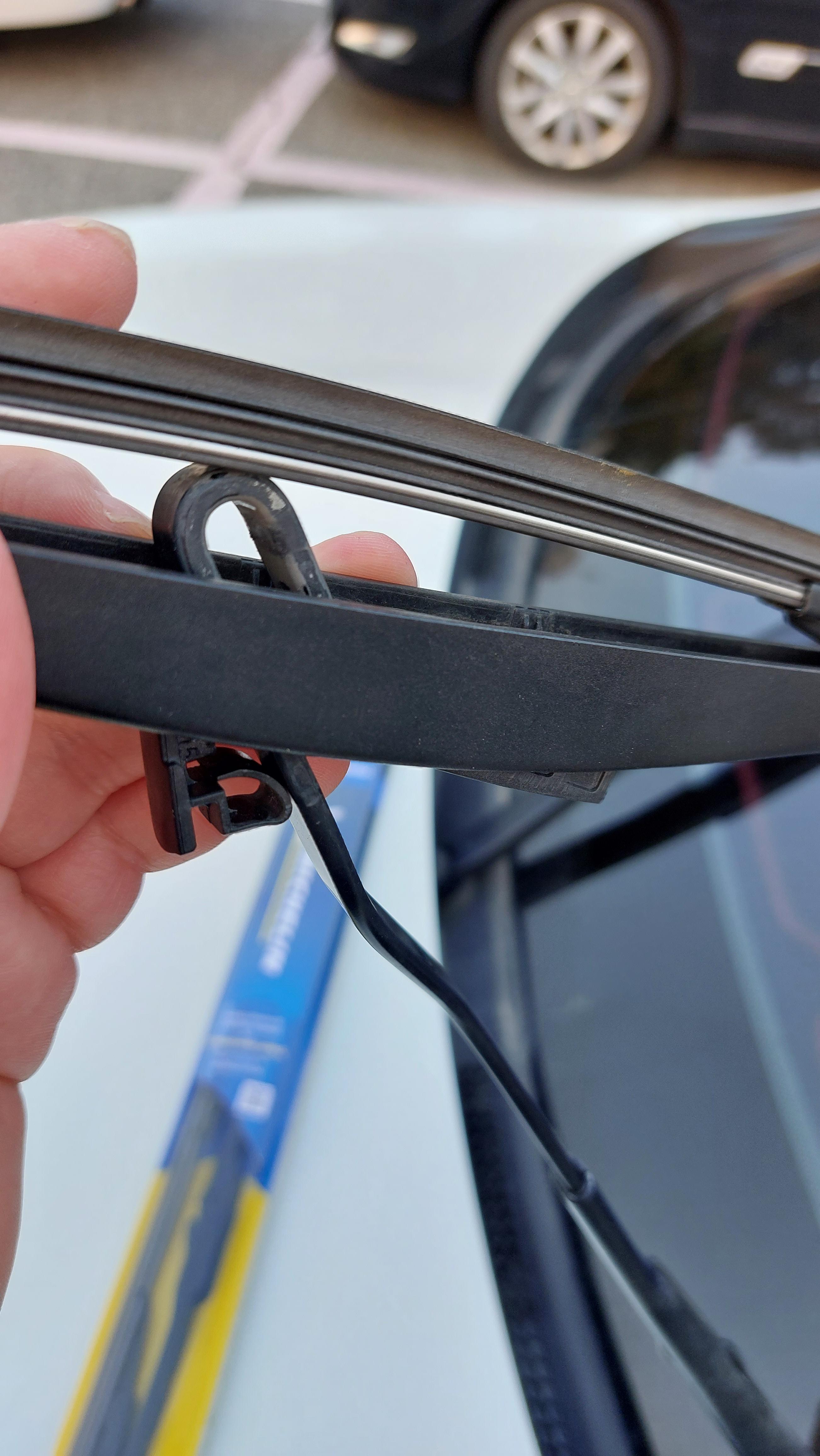 기존 와이퍼는 클립형으로 클립을 제낀 다음에 후크를 빼 주면 됩니다.