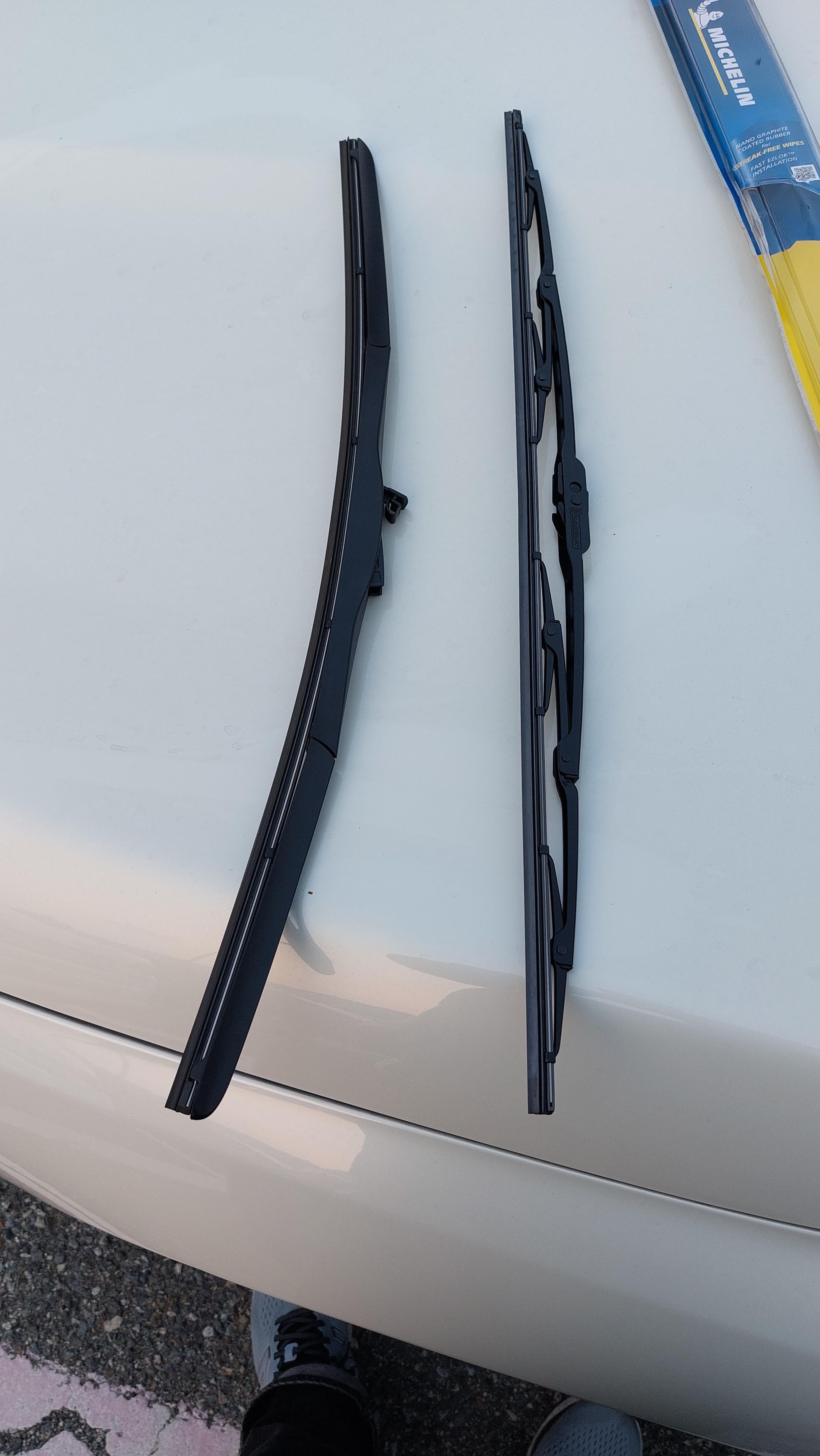 기존에 사용했던 메탈 와이퍼랑 미쉐린 제일 싸구려 와이퍼랑 비교를 해 봅니다.