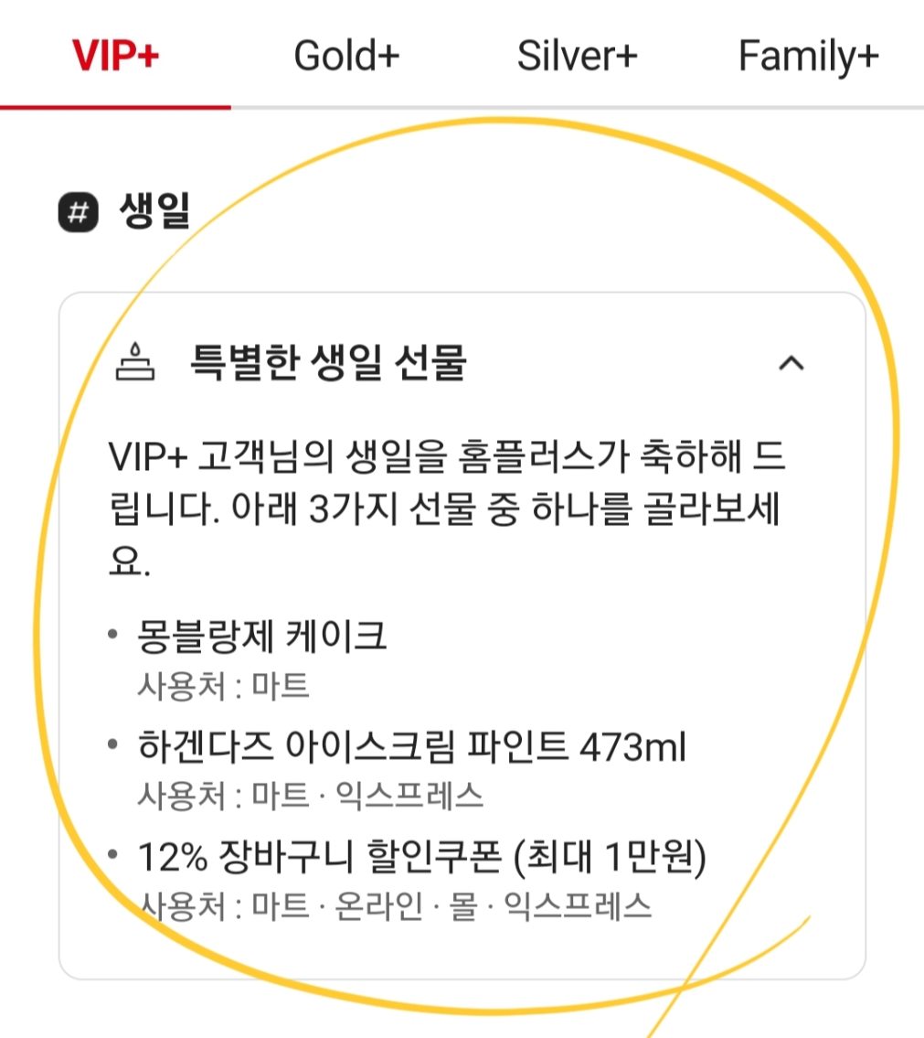혹시 나의 홈플러스 등급이 VIP+ 인 경우에는 생일 쿠폰을 꼭 받으셔서