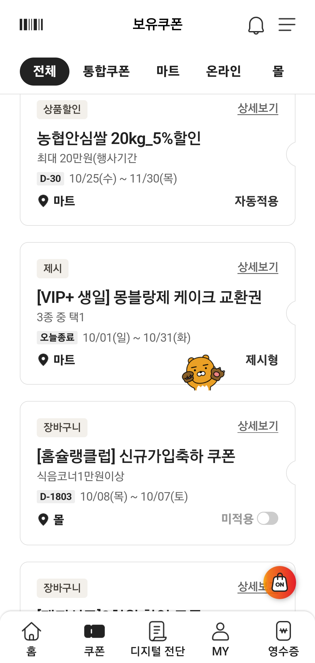 보유쿠폰 란에 해당 홈플러스 생일 쿠폰이 보일것이다.