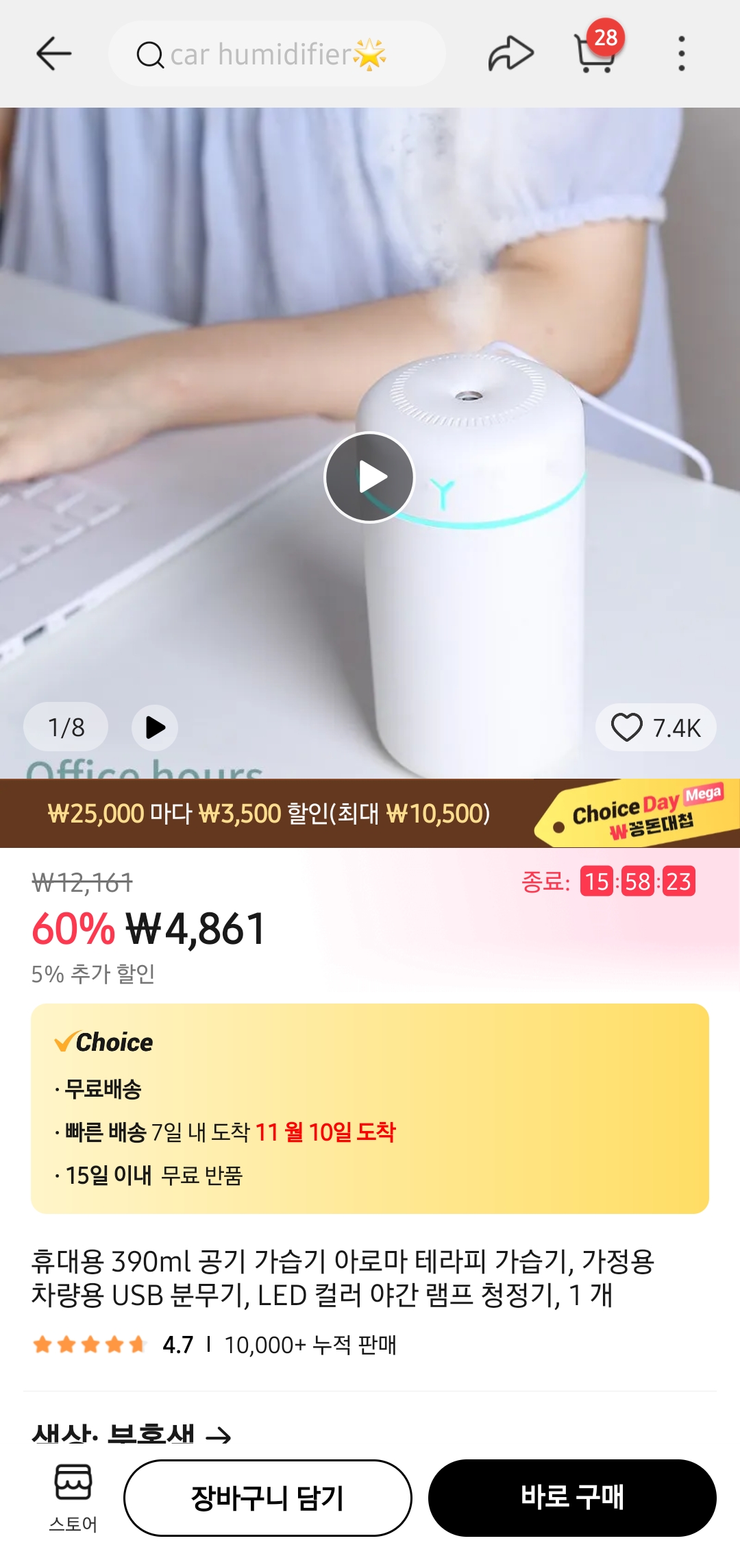 회사나 집에서 탁상용으로 쓸만한 가습기를 구매하였습니다.