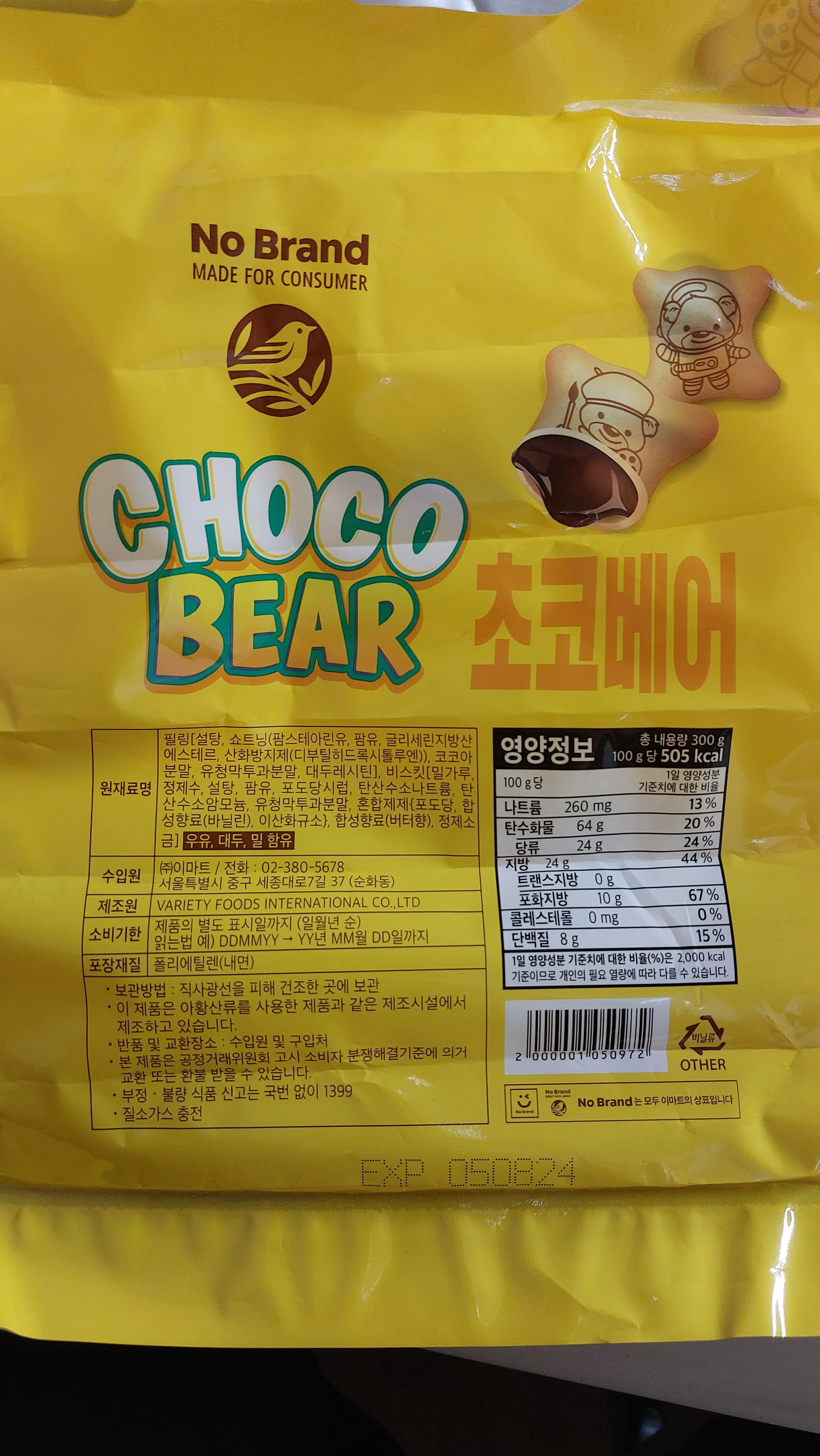 과자 이름은 초코 베어로 되어 있고,