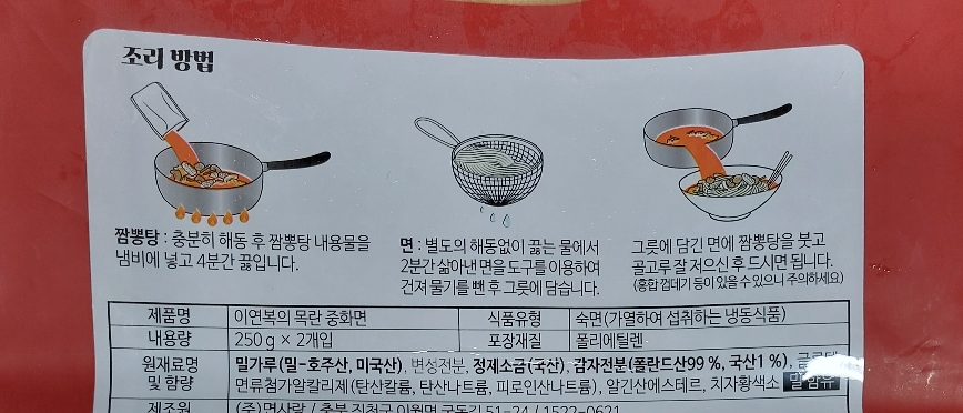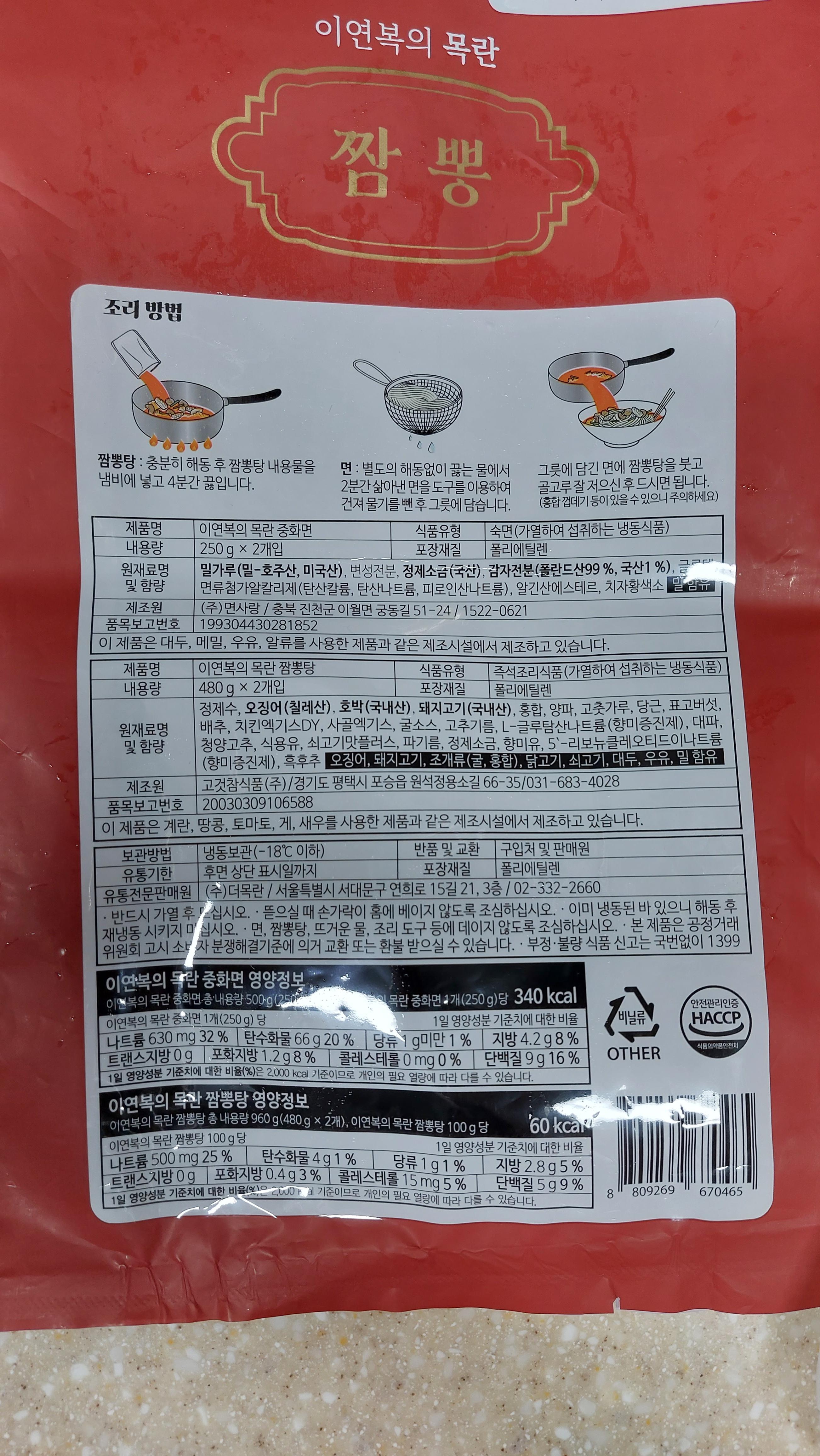 이연복 짬뽕구성은 국물팩 2개, 면 2개가 끝입니다.