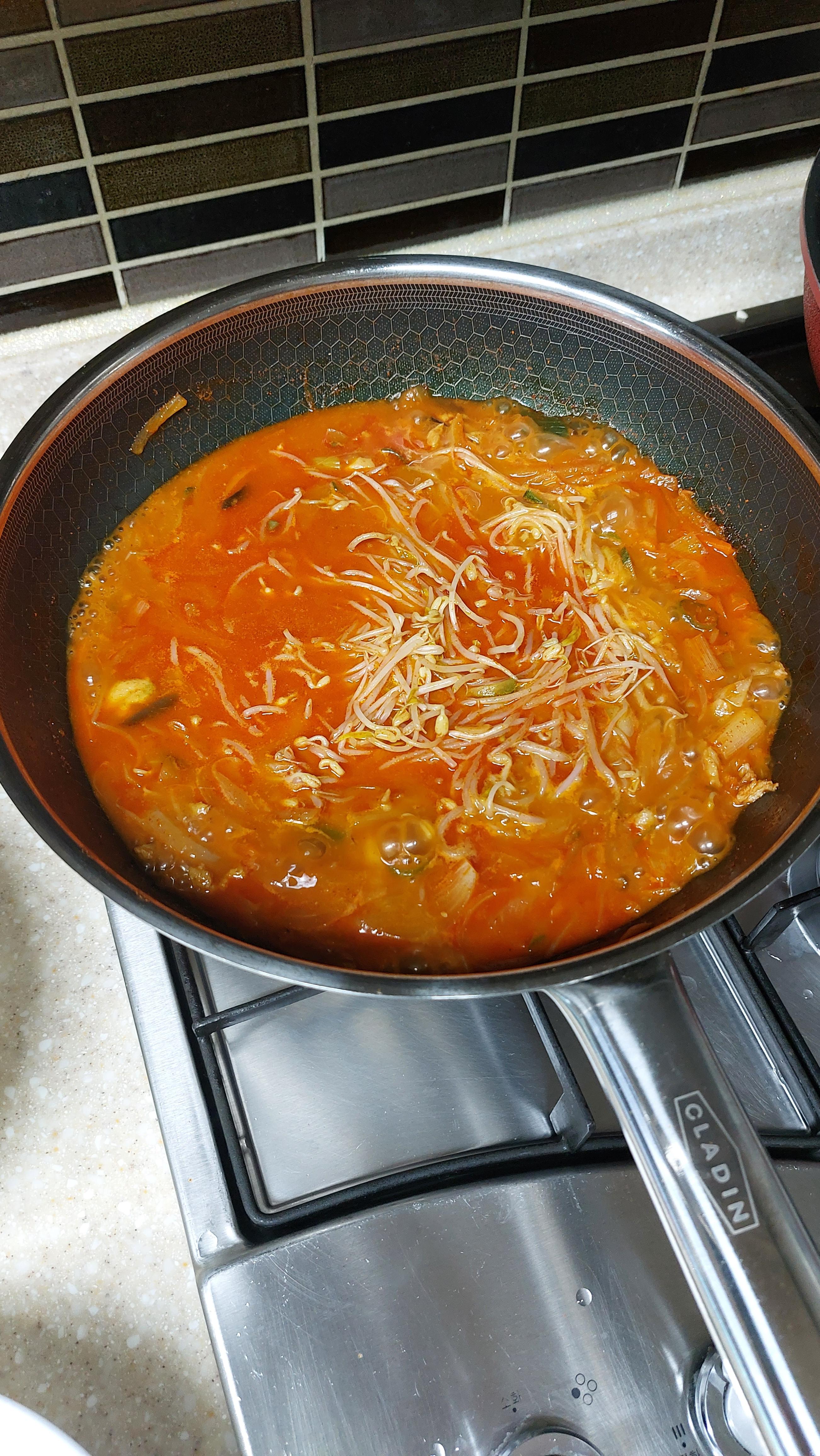 해동된 짬뽕국물 숙주를 조금만 넣고 30초만 끓여주세요. 많이 끓이면 식감이 많이 사라짐.