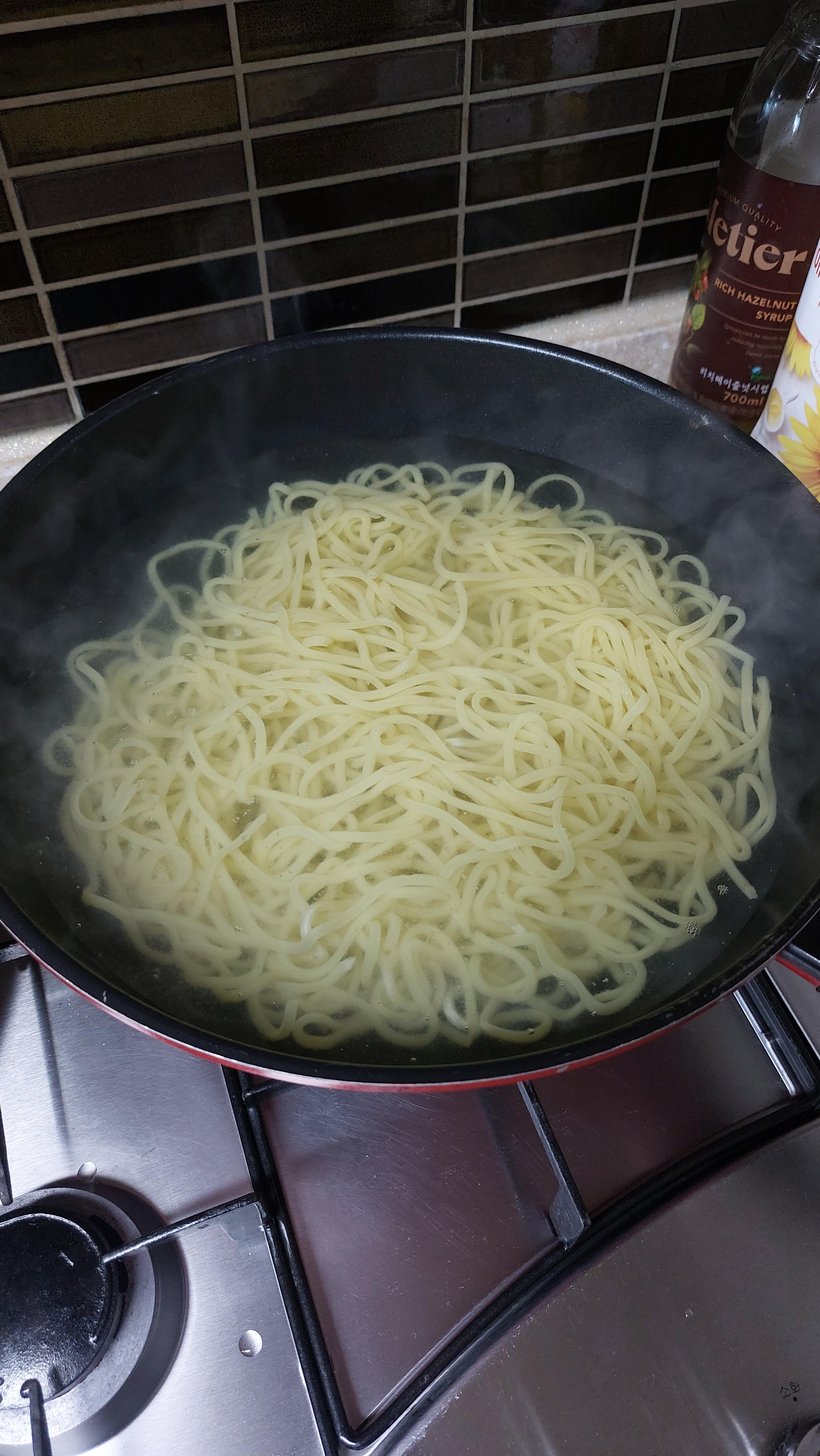 5. 면 끓일 냄비의 물이 끓기 시작하면 면을 넣고 2분만 삶아준다.