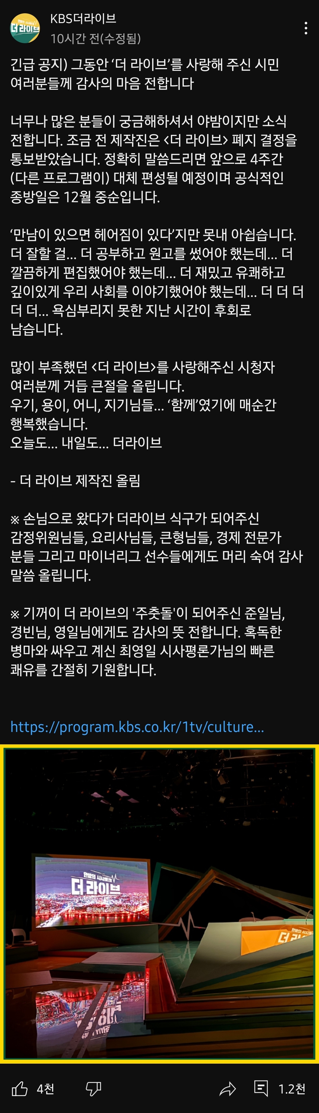 2. kbs2 더 라이브 폐지