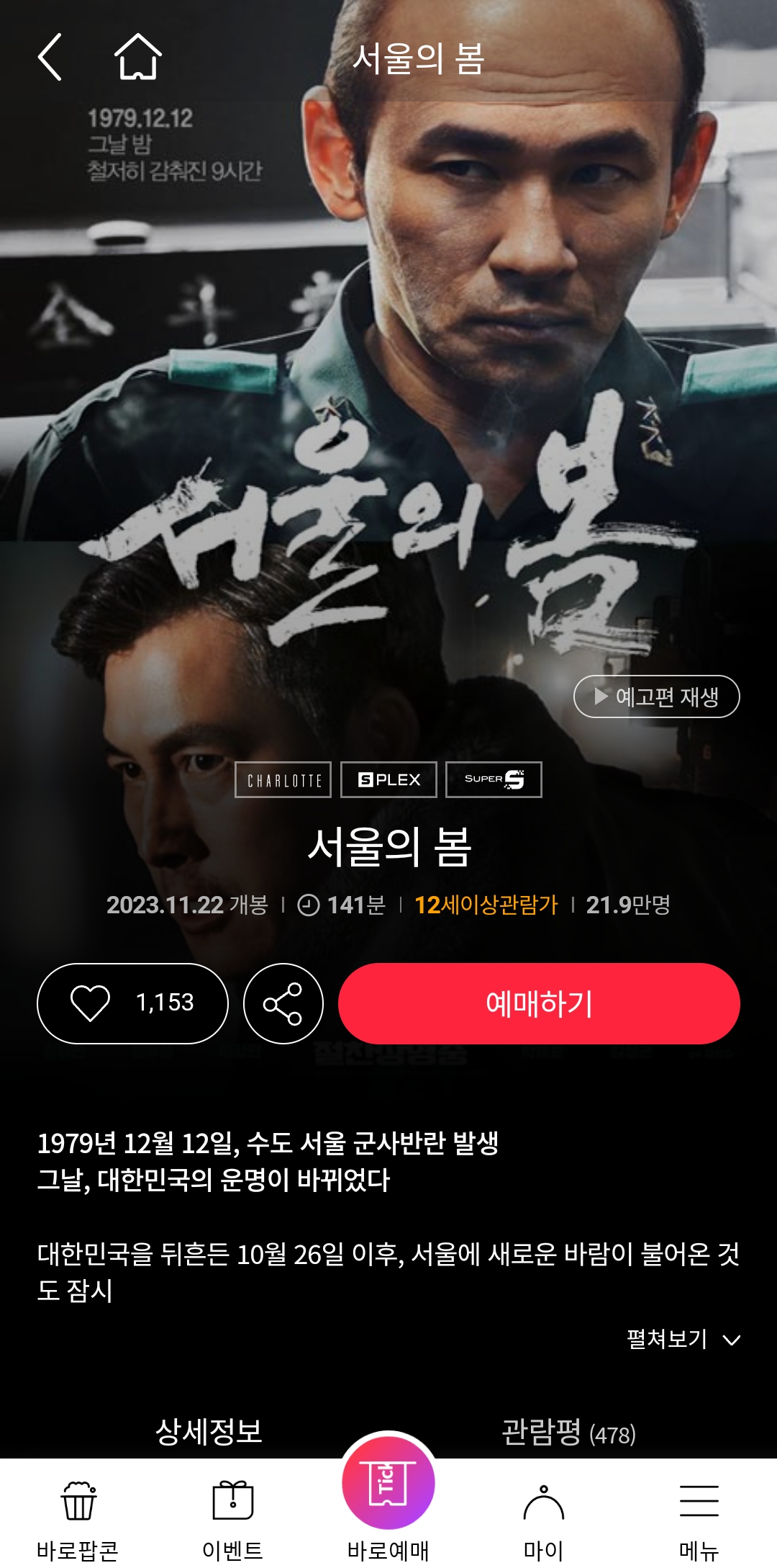 오늘 오랜만에 관저동에 위치한 롯데시네마에서 재밌는 현대 역사 영화 서울의 봄 보고 왔습니다.