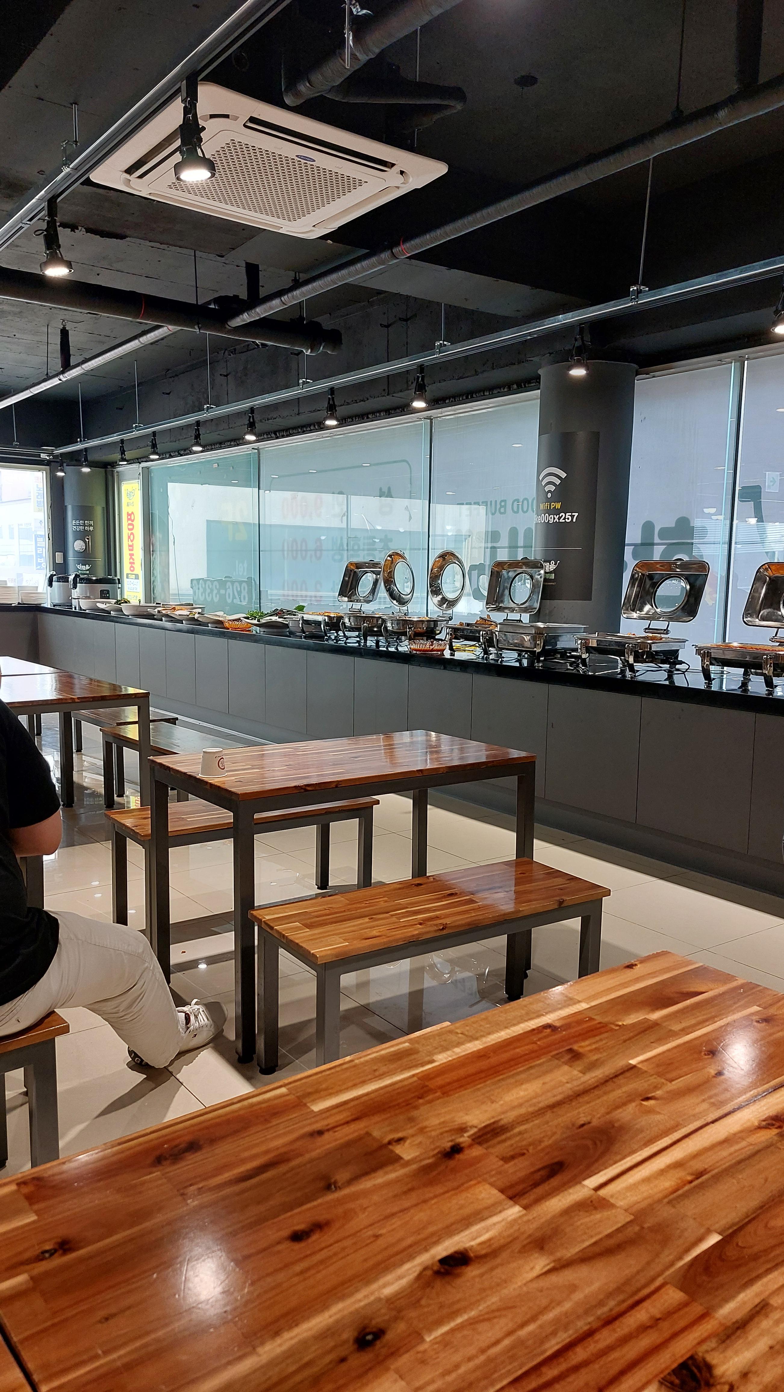 원신흥동 한식뷔페 더 채움 매장은 굉장히 넓어요 식탁 식으로 되어 있고 들어가자마자 사장님께서 음료수를 500ml짜리 하나를 주십니다.