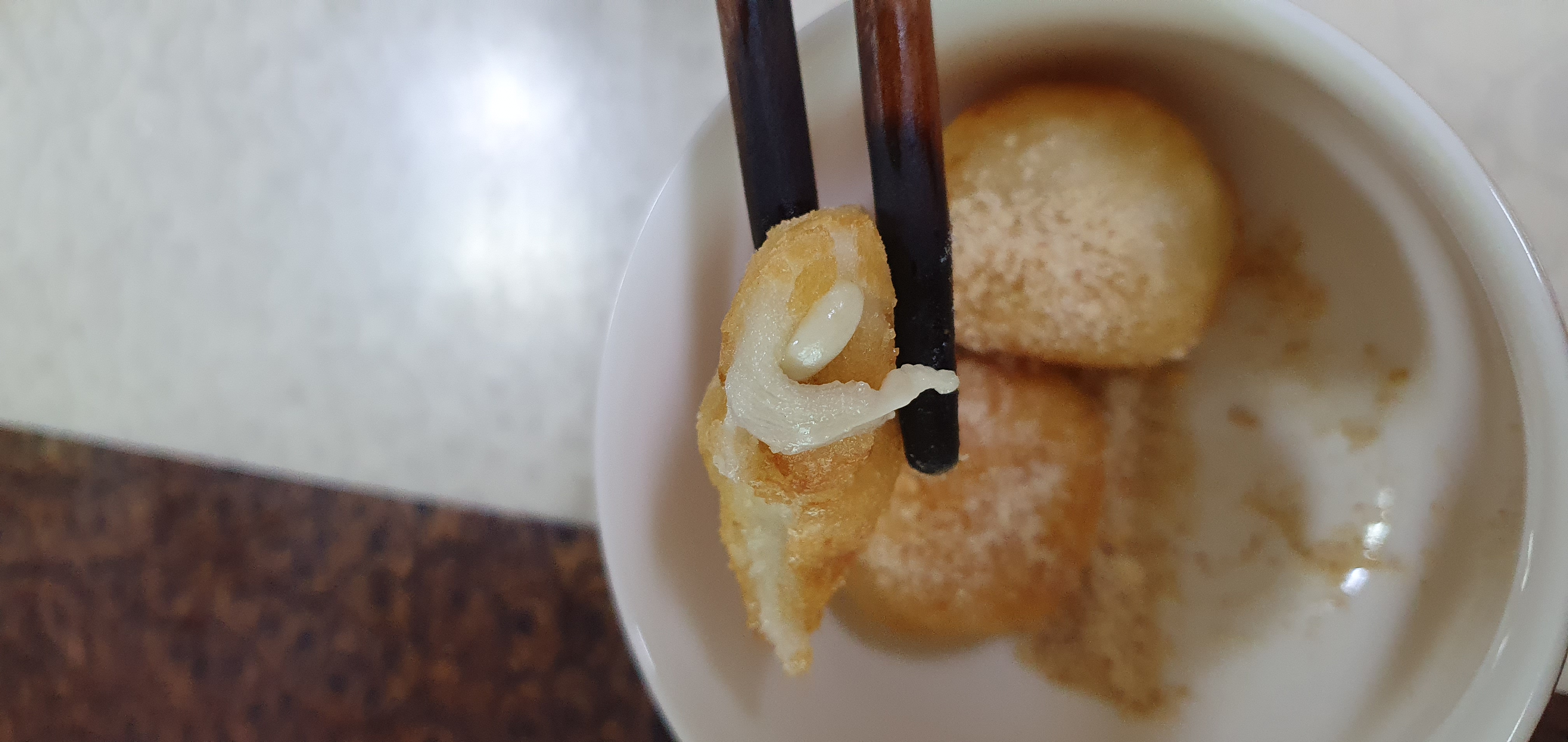 겉은 바삭 속은 촉촉 그리고 찹쌀 도너츠처럼 식감이 좋다.