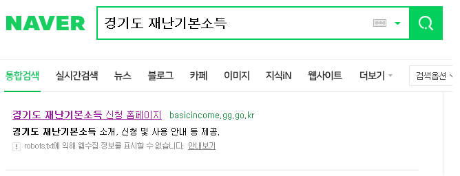 1. 네이버 또는 다음에 접속을 한다. 검색창에 "경기도 재난기본소득"을 입력하고 엔터를 칩니다.